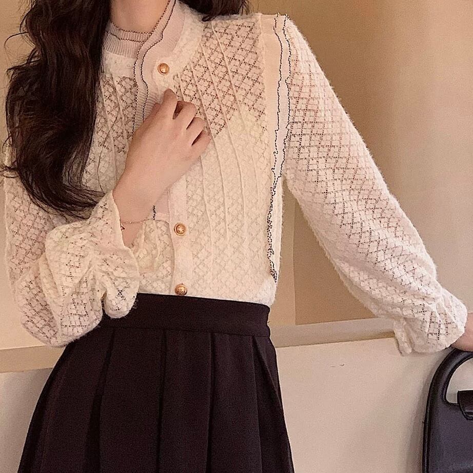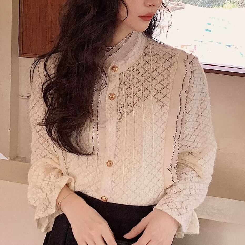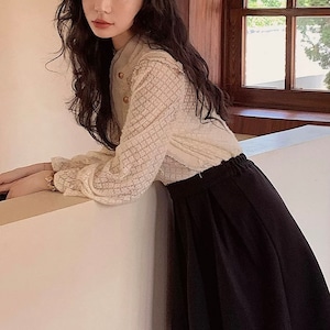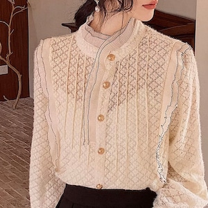 レーススタンドカラーブラウス W00417