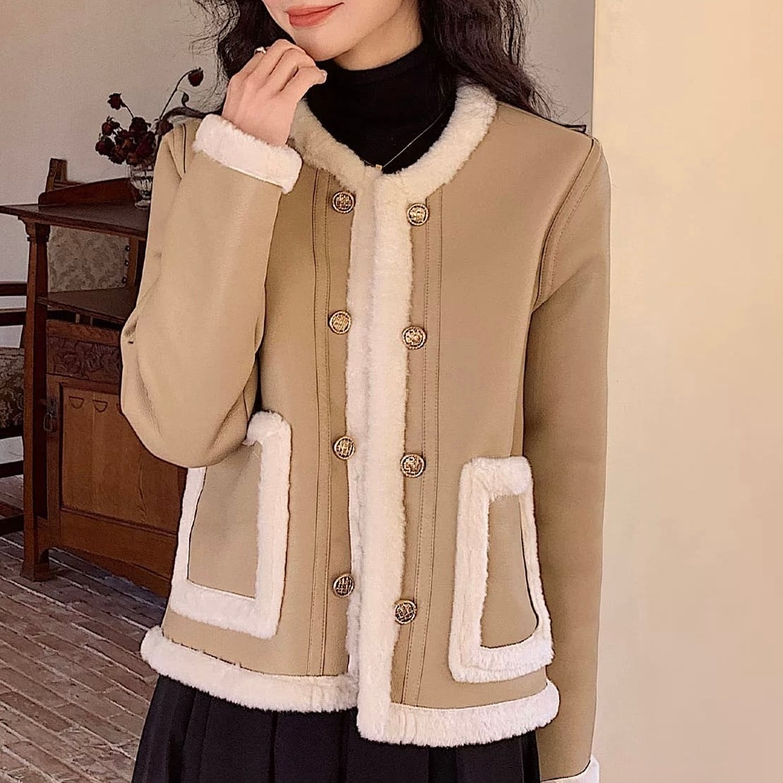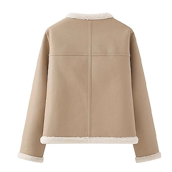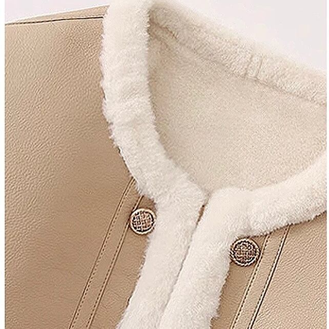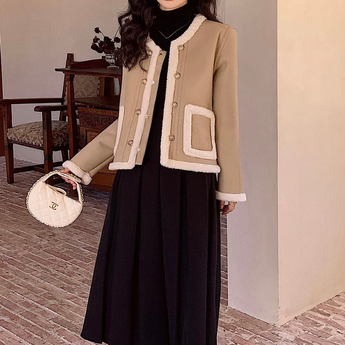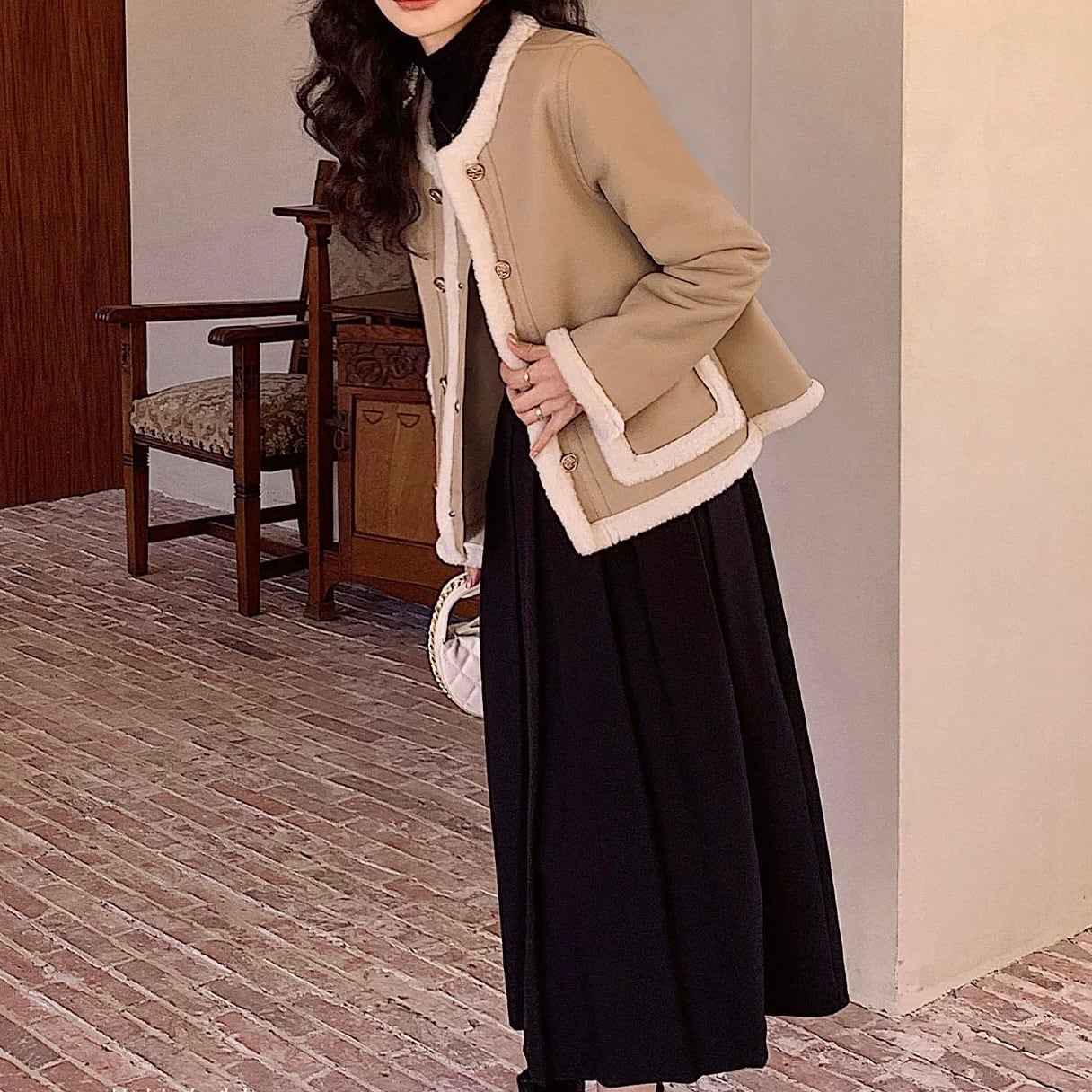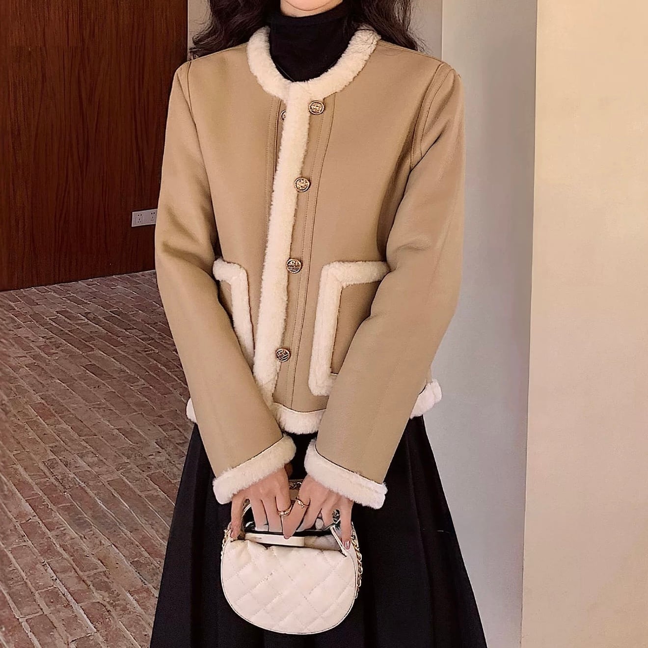 ミニマルなノーカラーに、ボアの温もりをプラス。