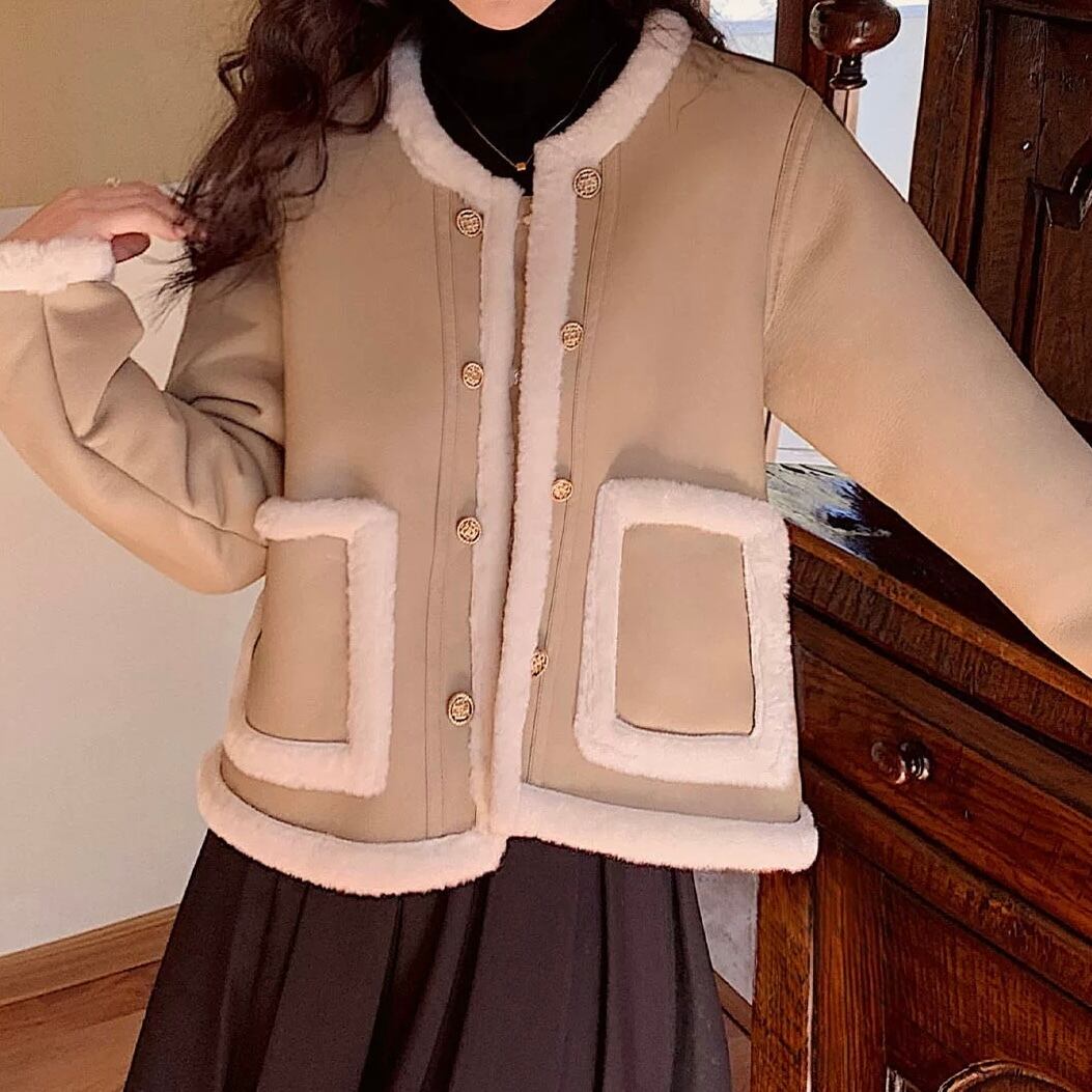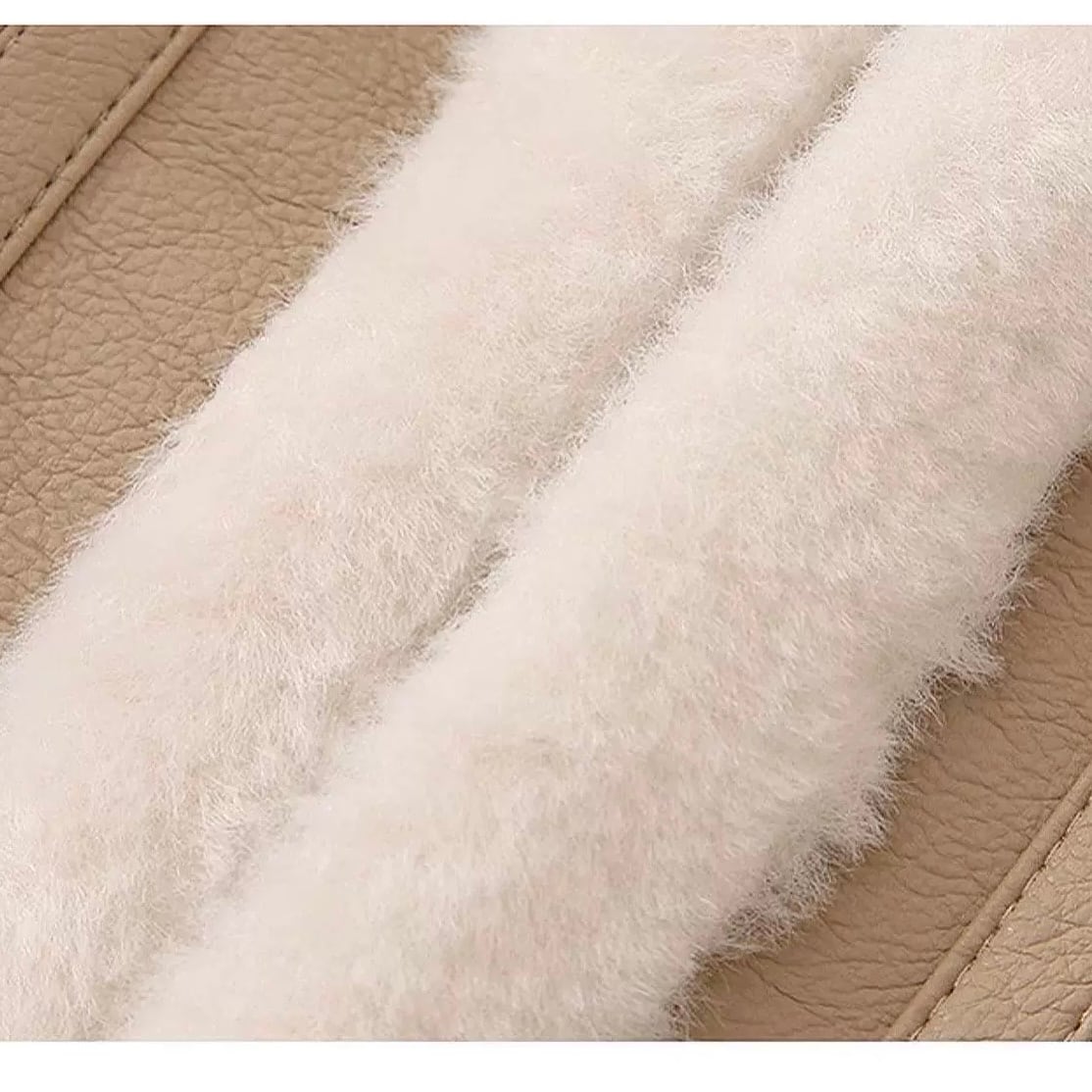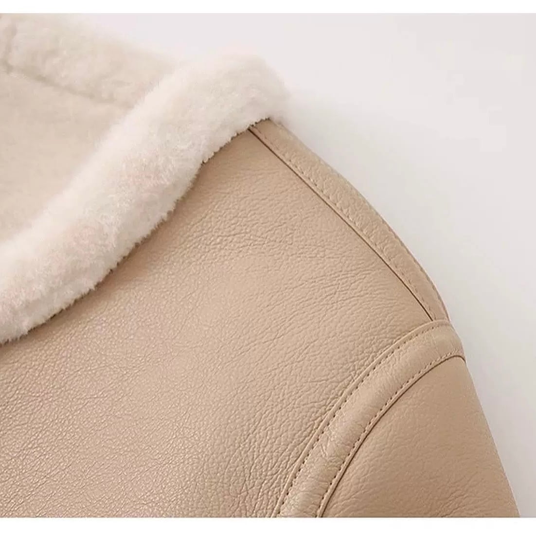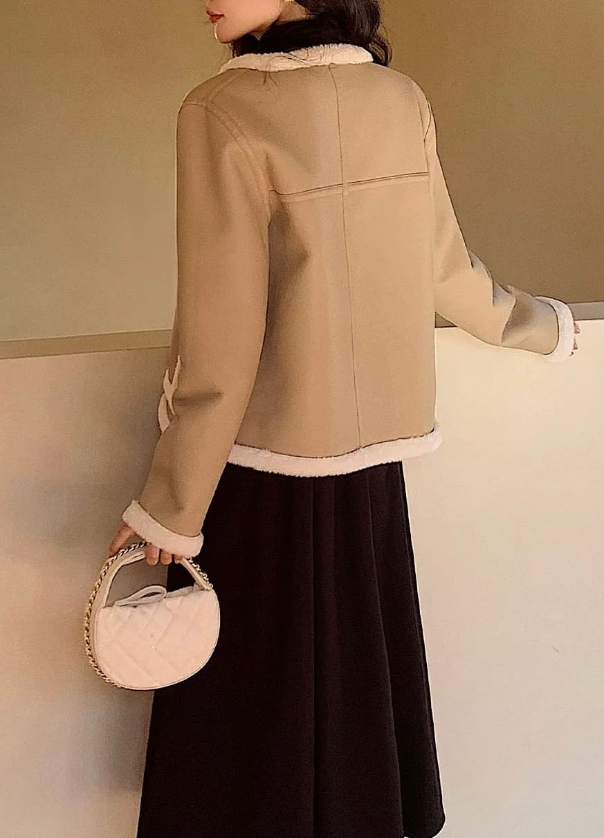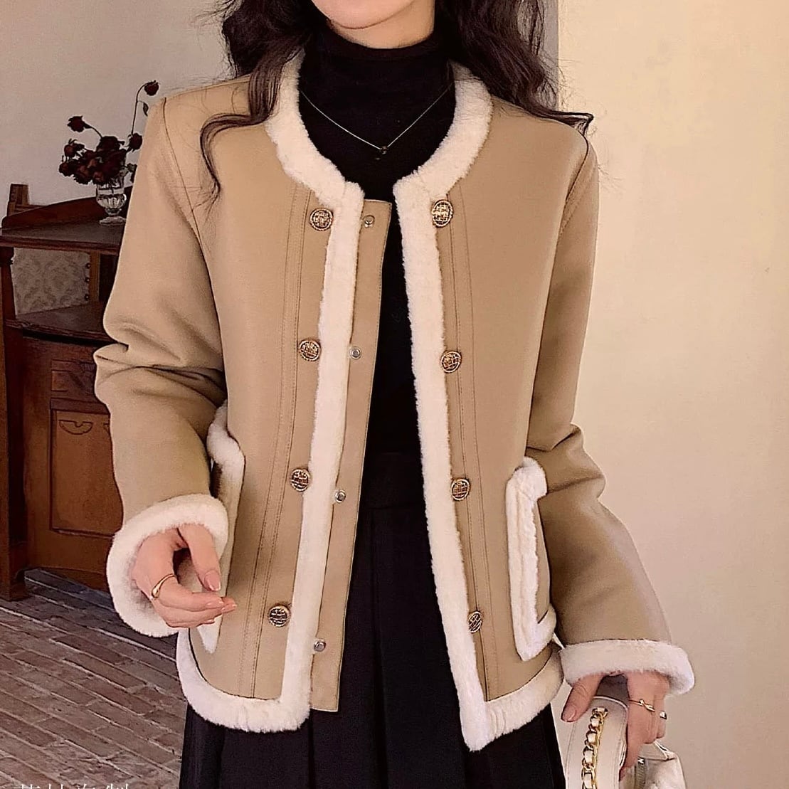 ミニマルなノーカラーに、ボアの温もりをプラス。