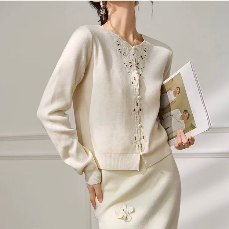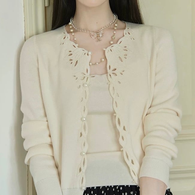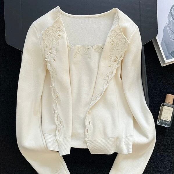 カットワークカーディガン&キャミソールセット W00421