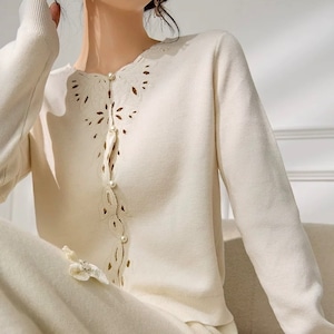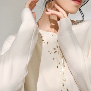 繊細なカットワークにパールを添えたフェミニンなデザイン。