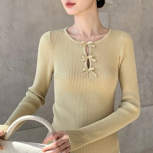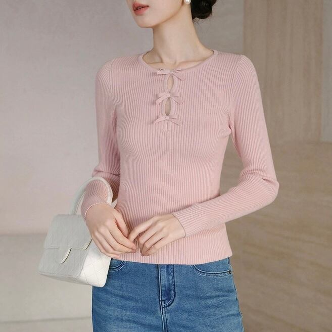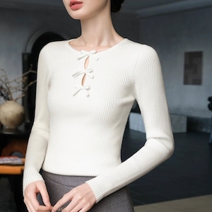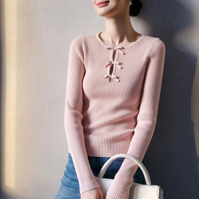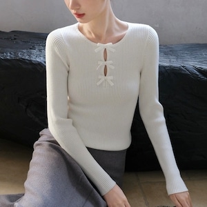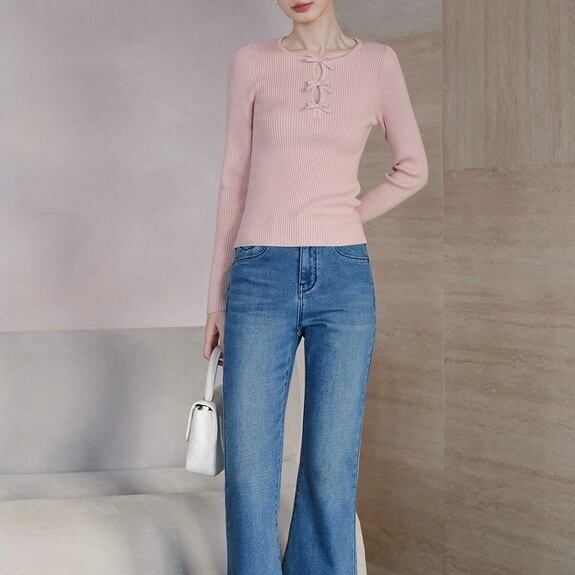 ノーブルリボンリブトップス W00427
