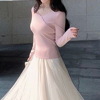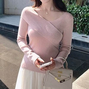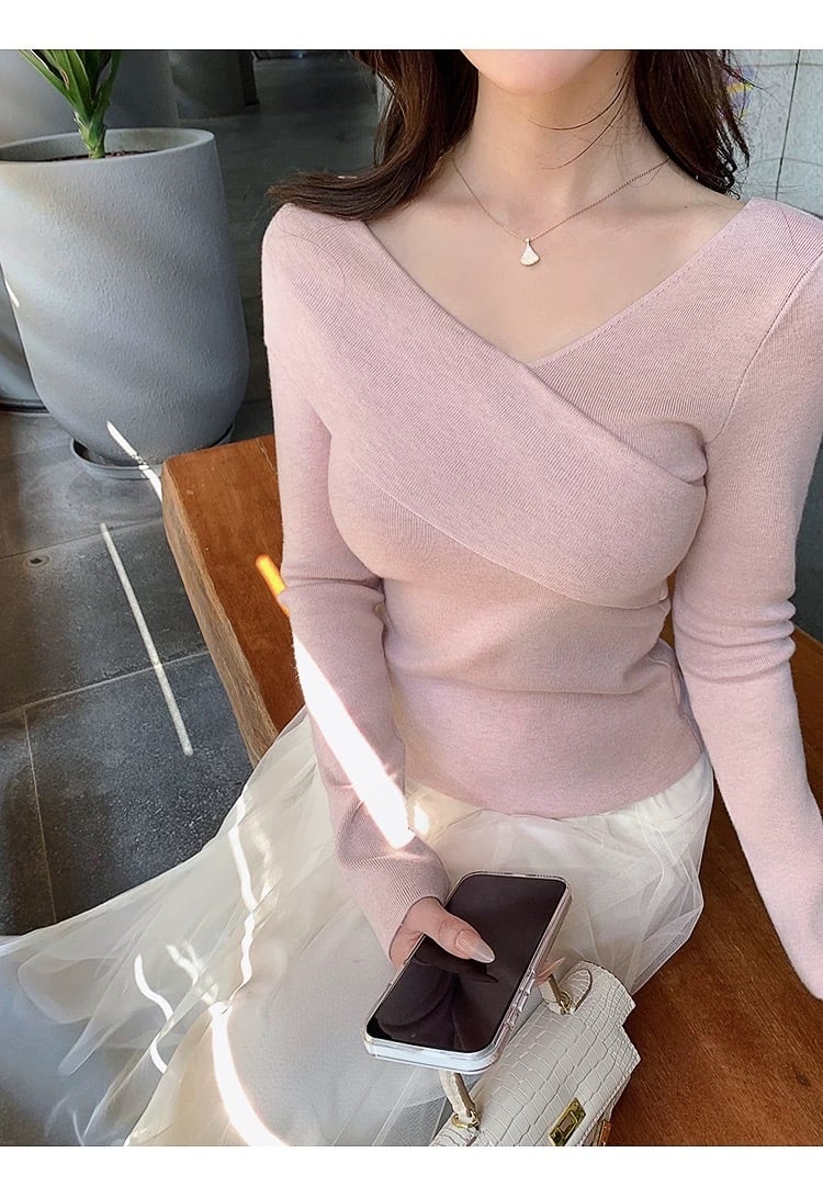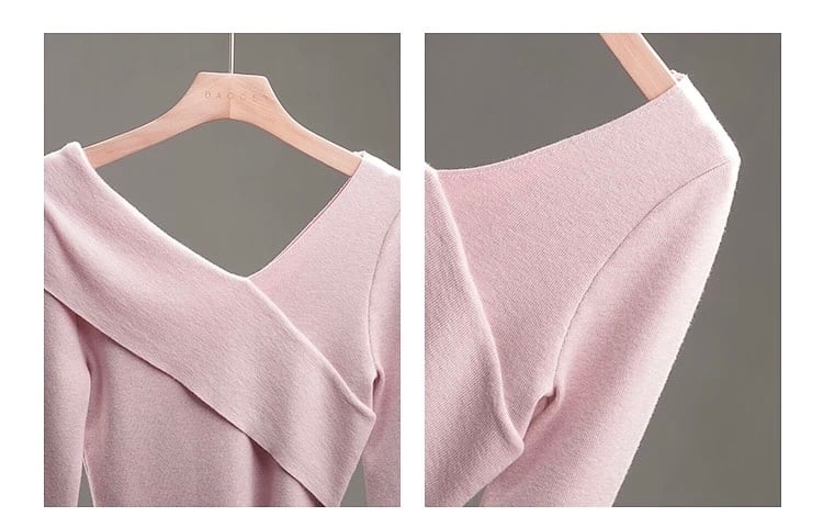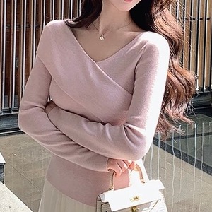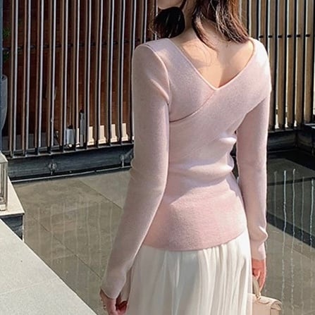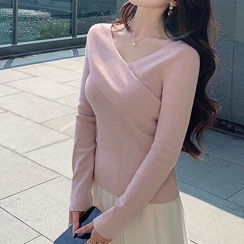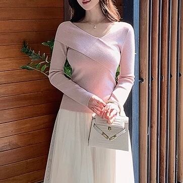 胸元の重なりが、上半身を立体的に見せてくれるデザイン。