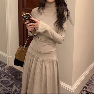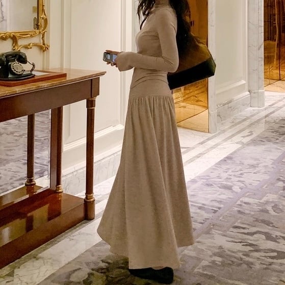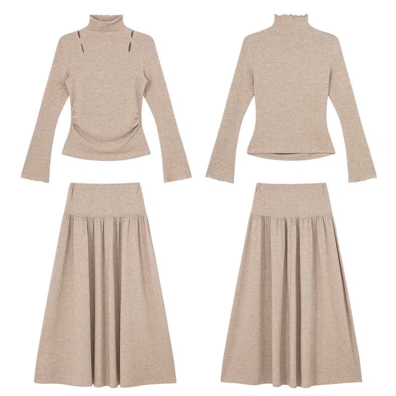 トップスとスカートを合わせるだけで、統一感のある装いが完成します。