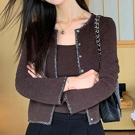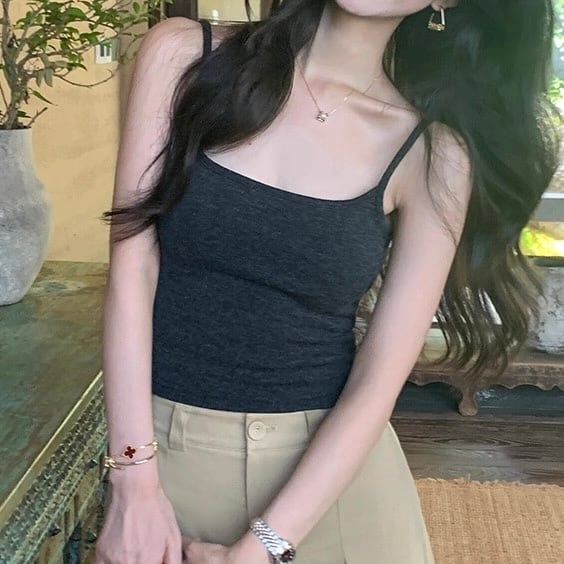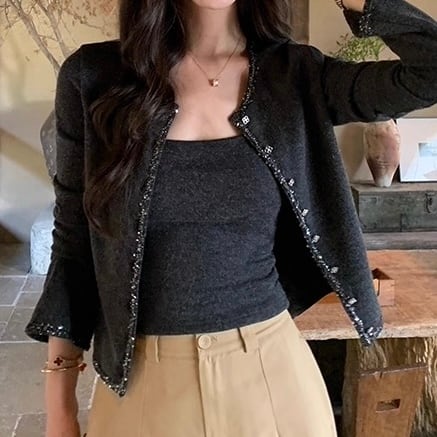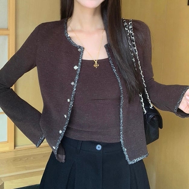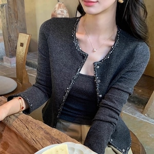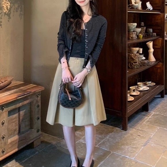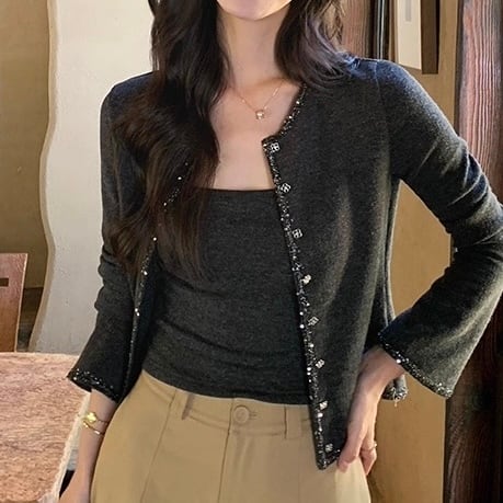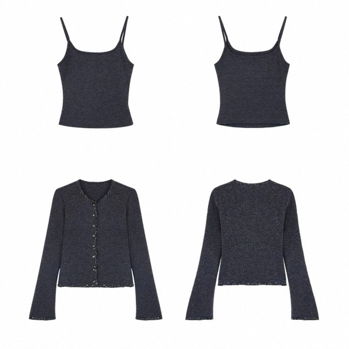 重ねて着るだけで、自然とまとまりのある装いに仕上がるカーディガンとキャミソールのセット。