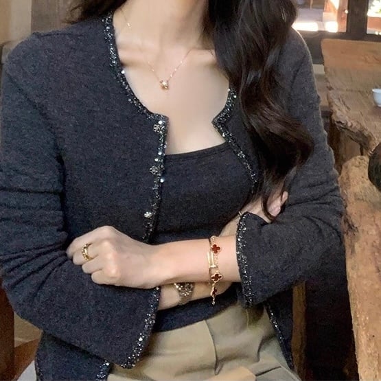 クラシックレイヤード カーディガン&キャミソールセット W00458