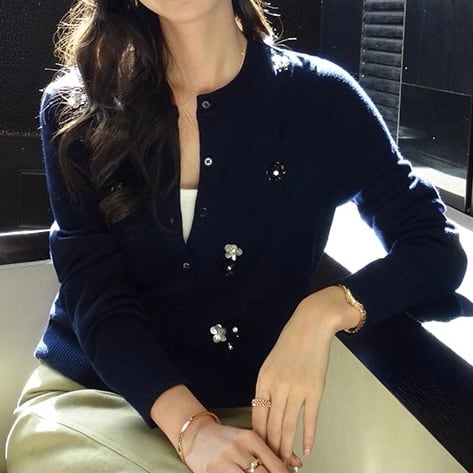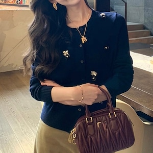 控えめなフラワー装飾が、さりげなく女性らしさを引き立てます。
