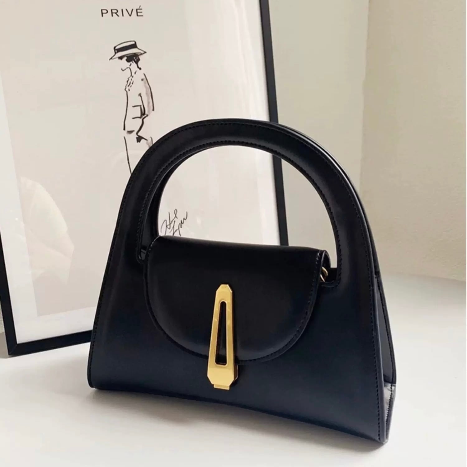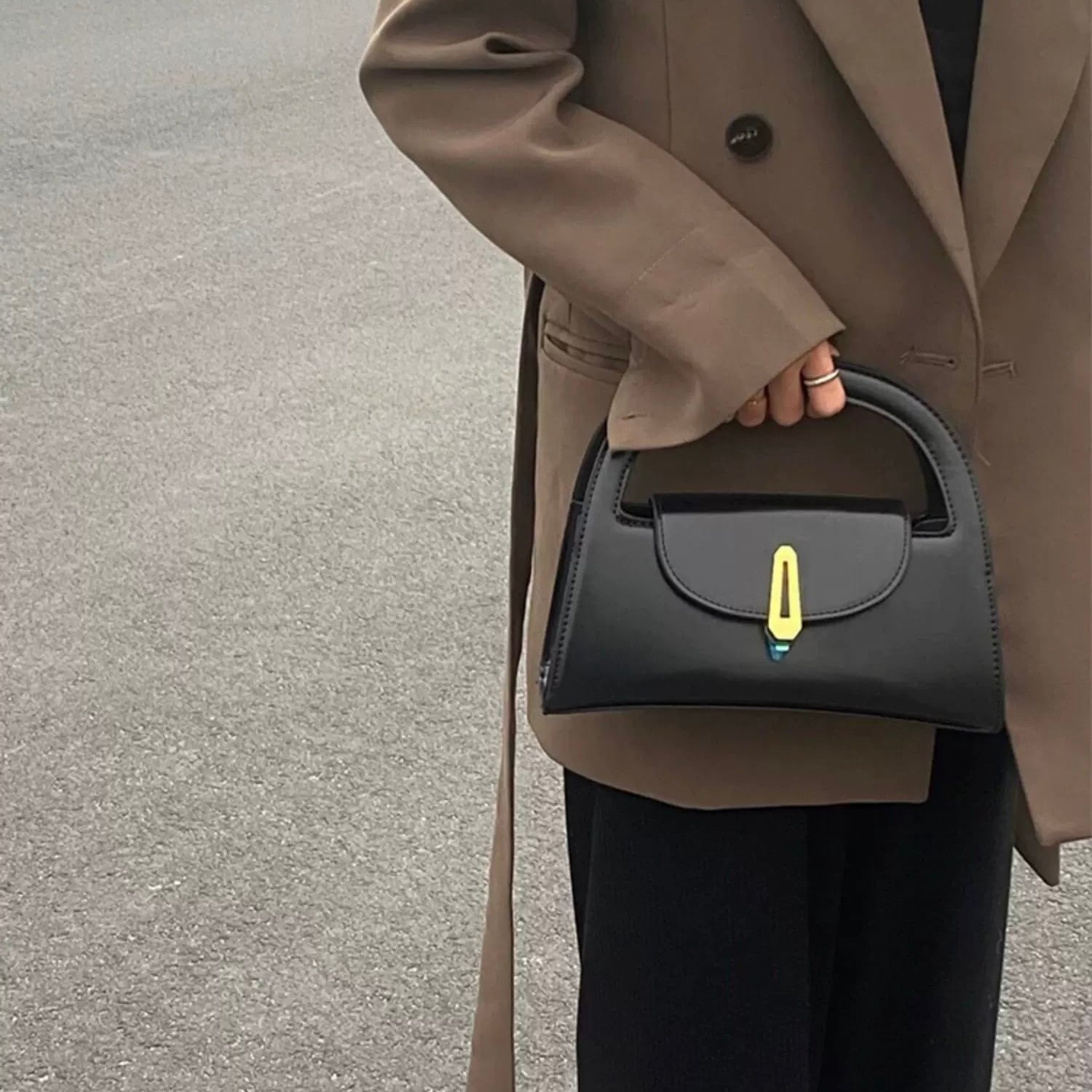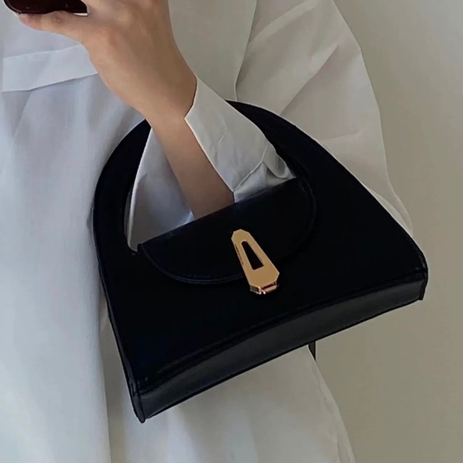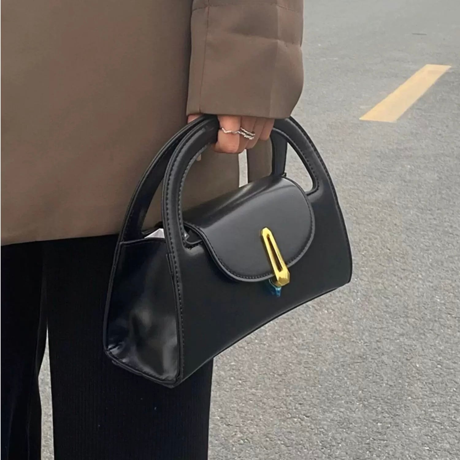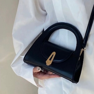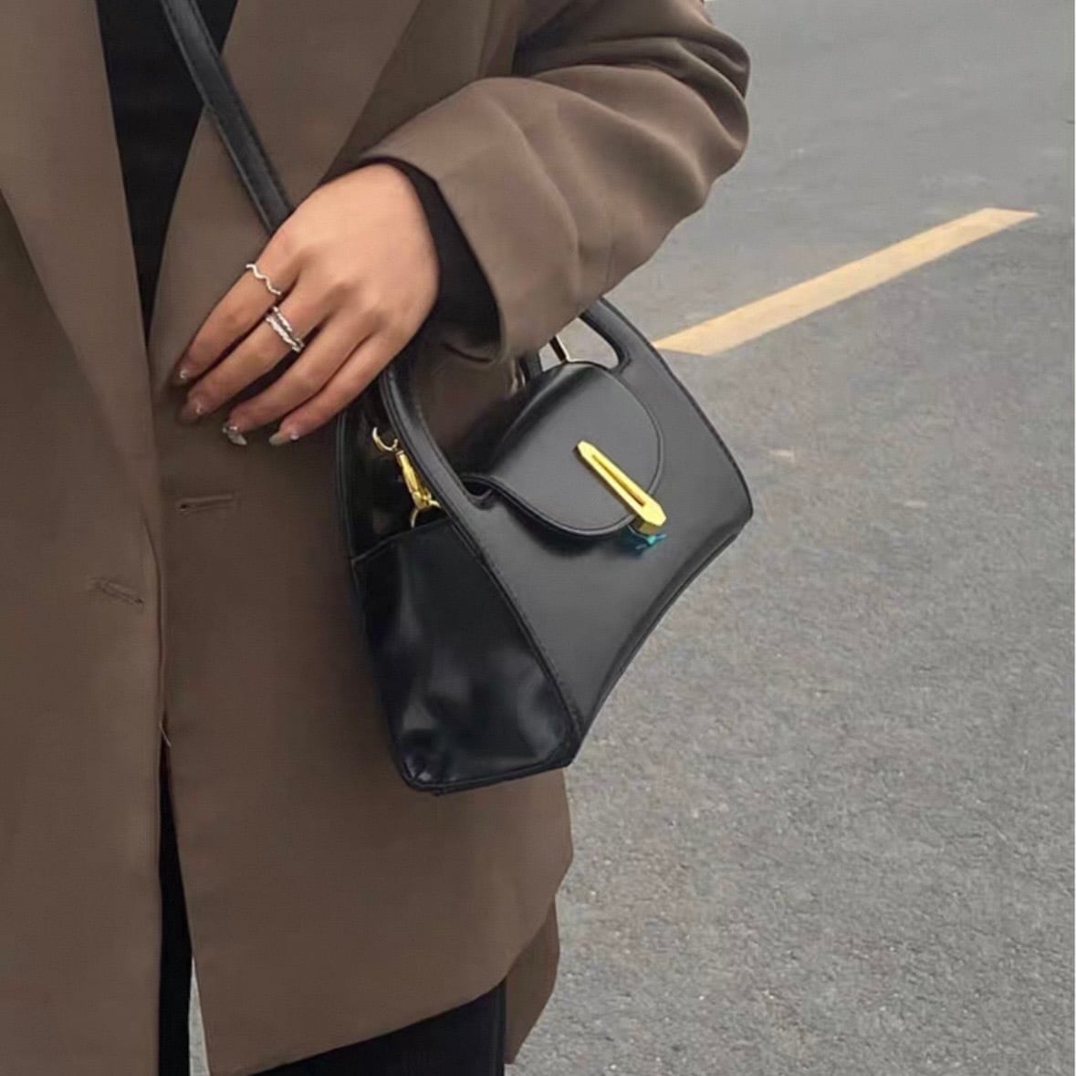 洗練されたフォルムに、ゴールドバックルが映えるミニハンドルバッグ。