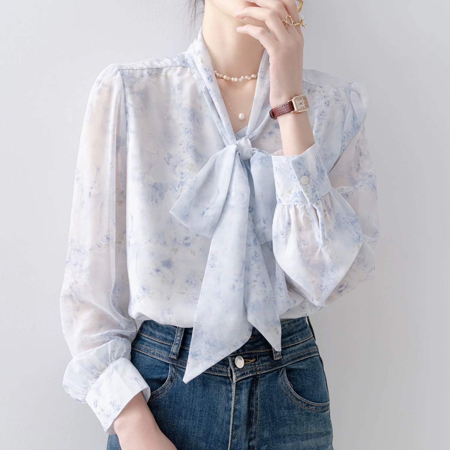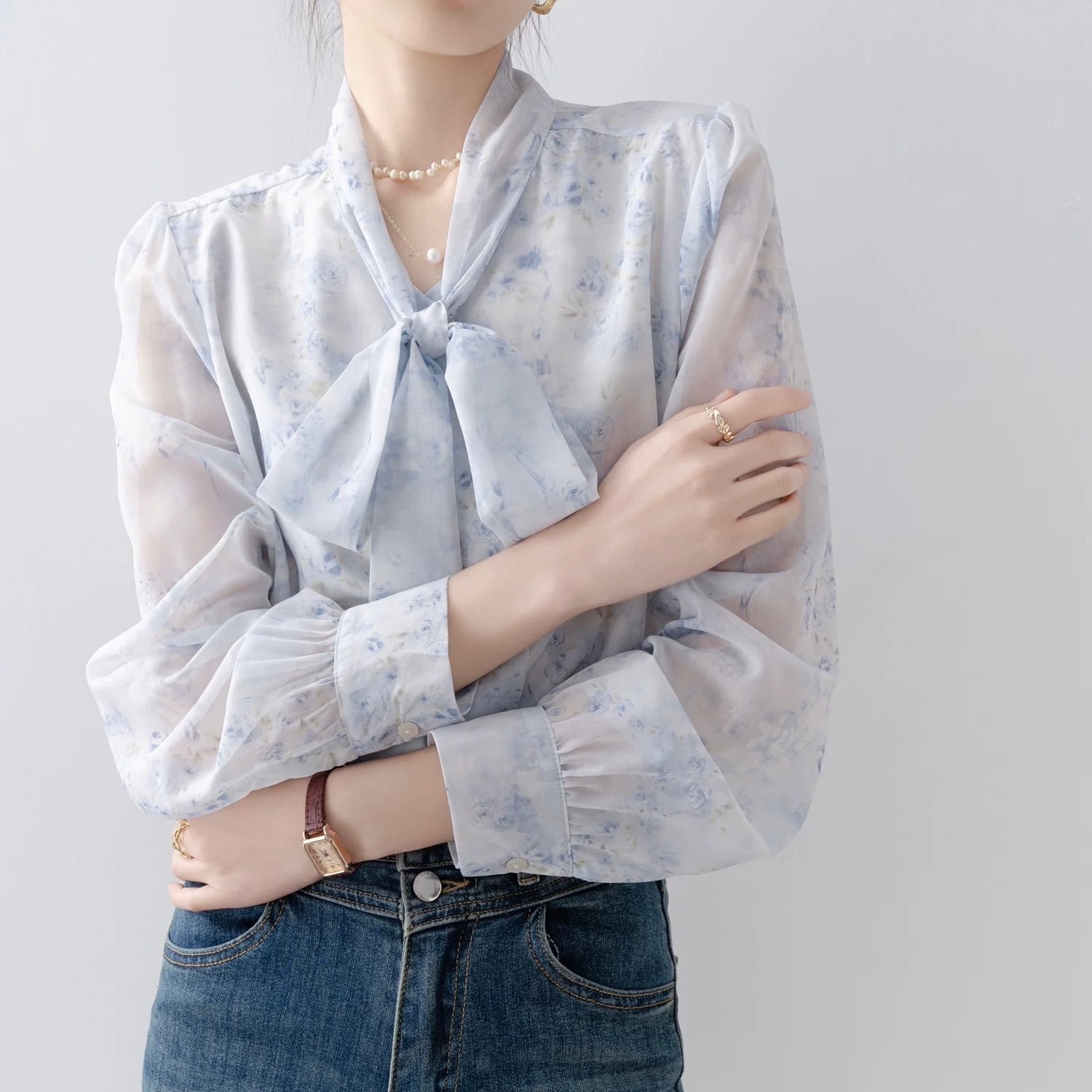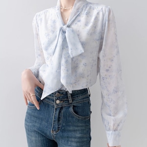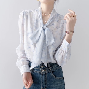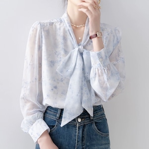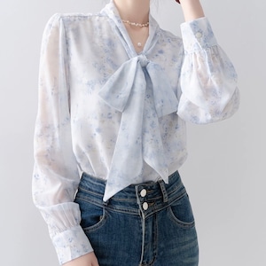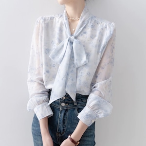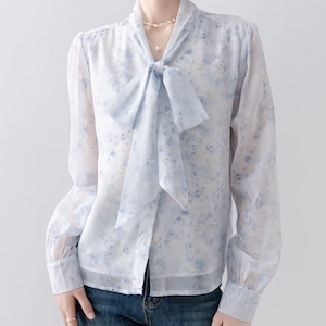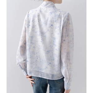 繊細な柄使いが、装いに品のある華やかさを与えるブラウス。