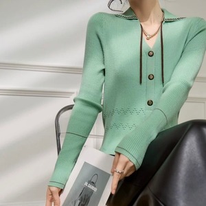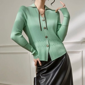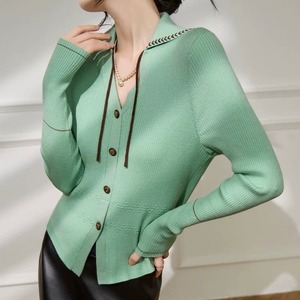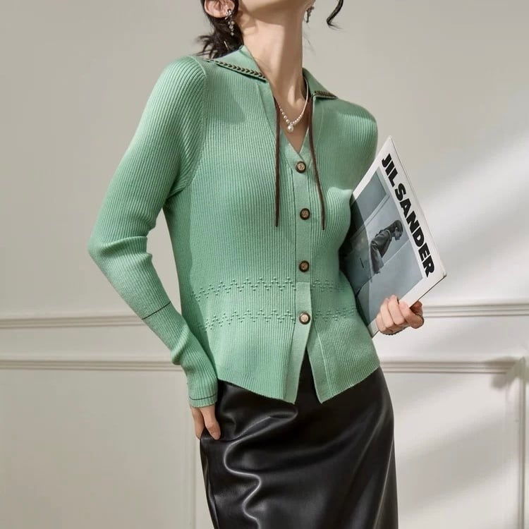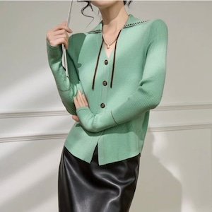 襟付きVネック 配色リブカーディガン W00475