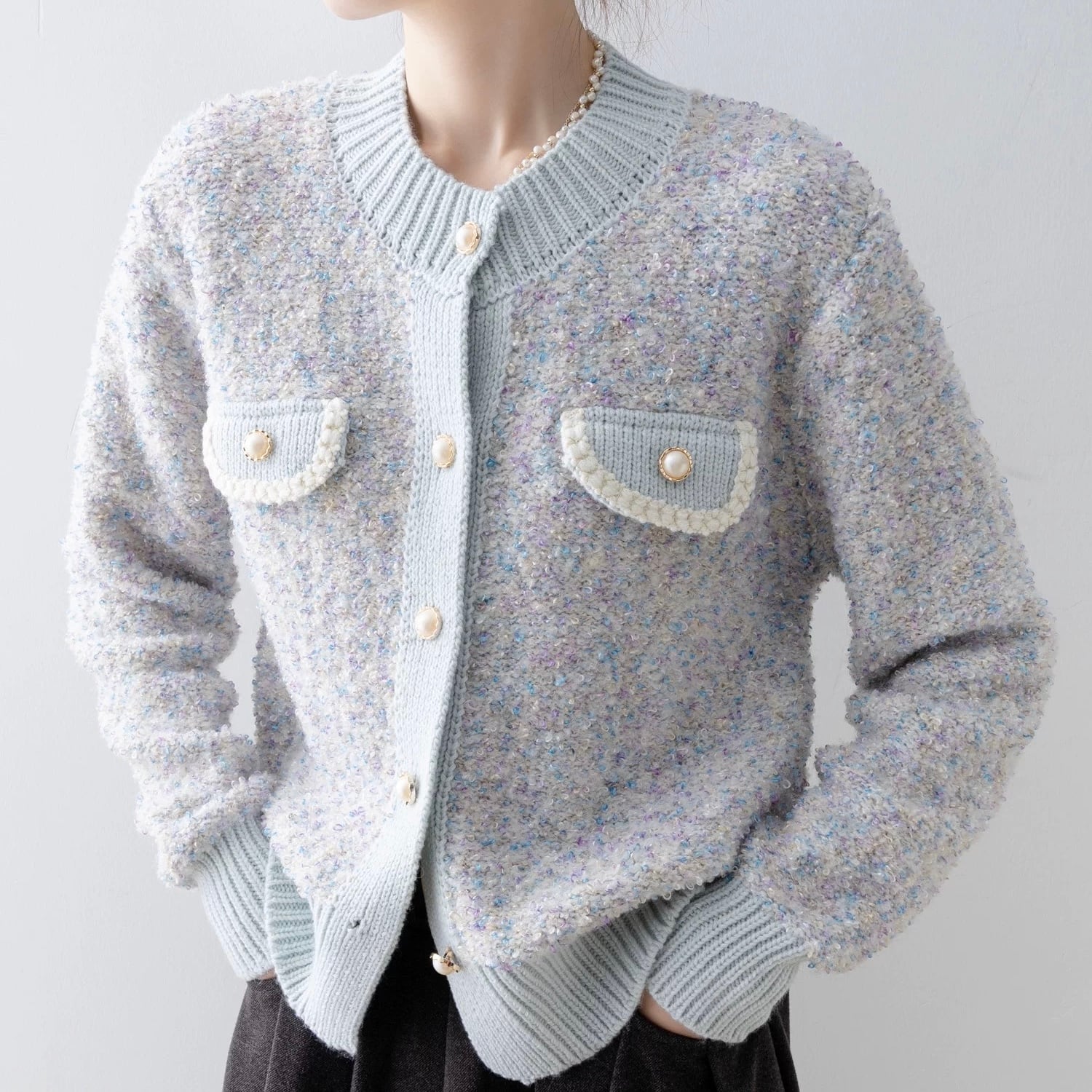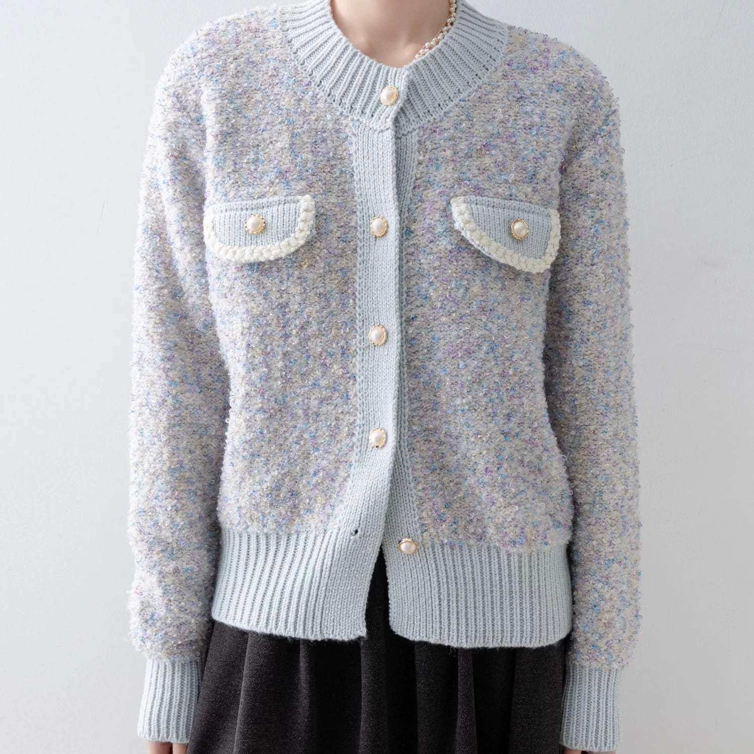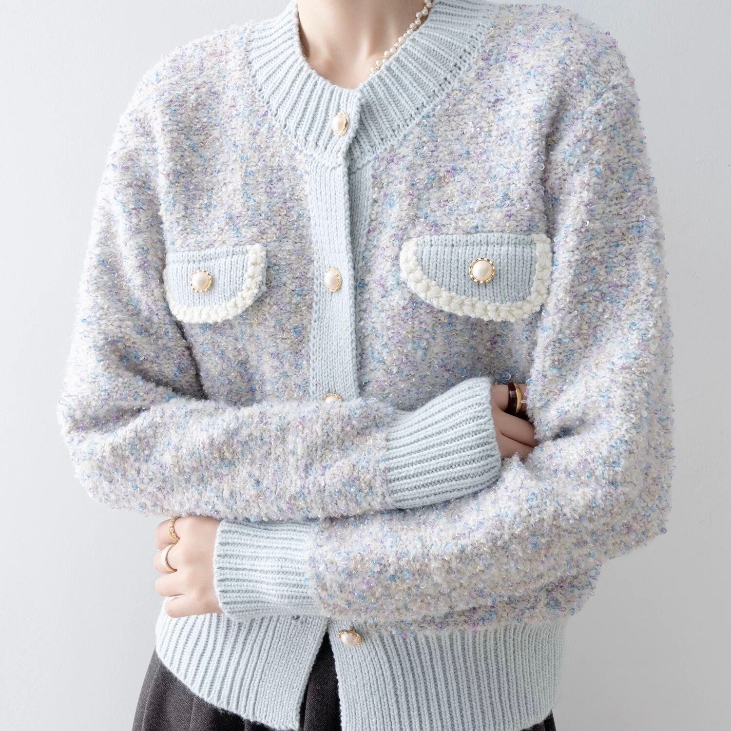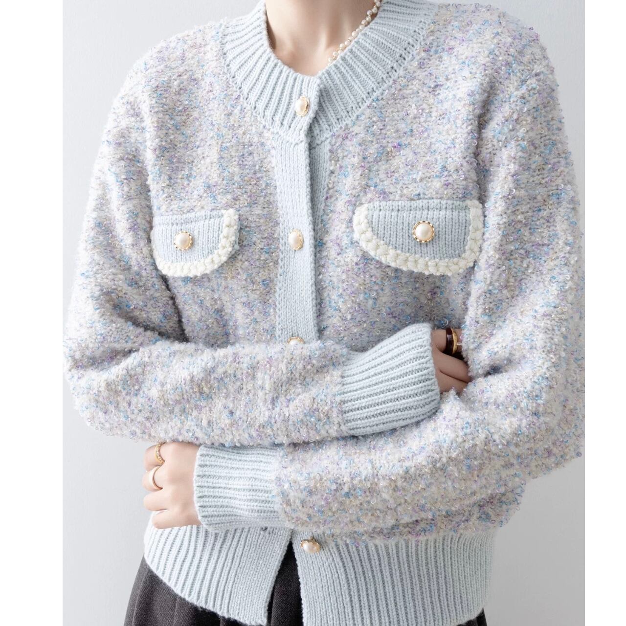 ツイードライクニットカーディガン W00479