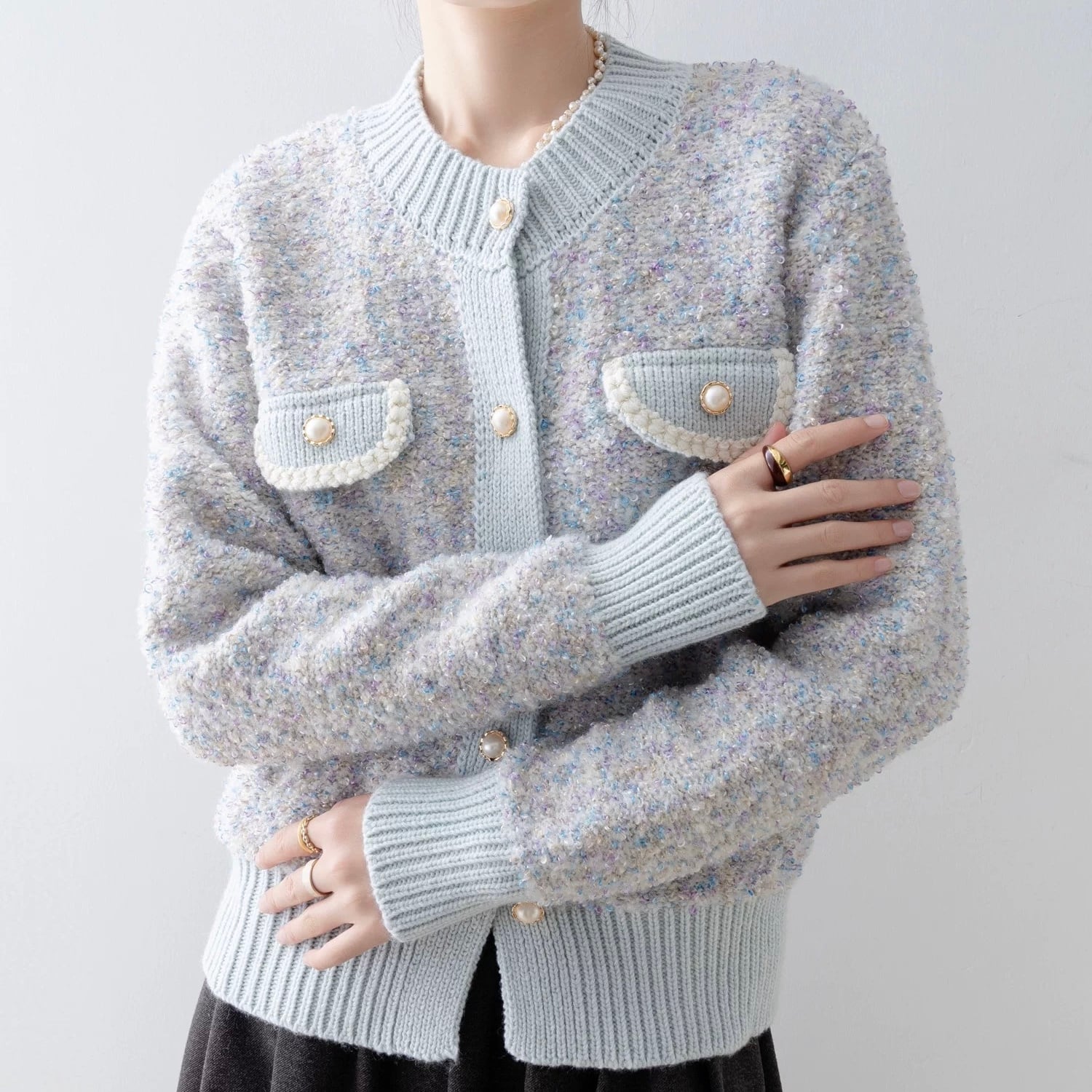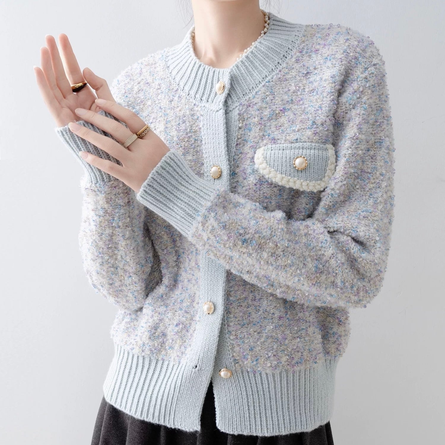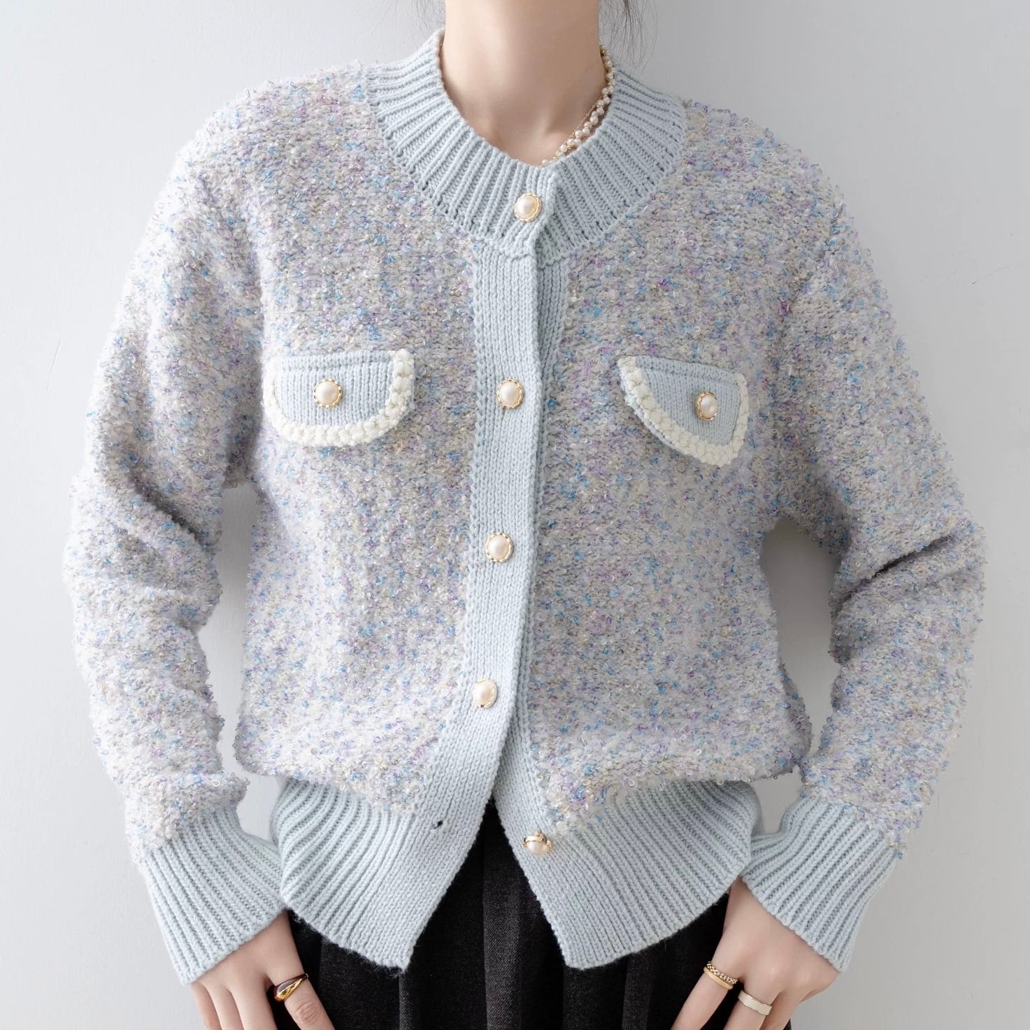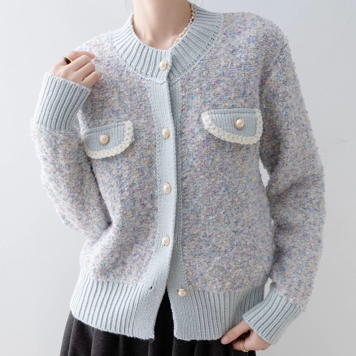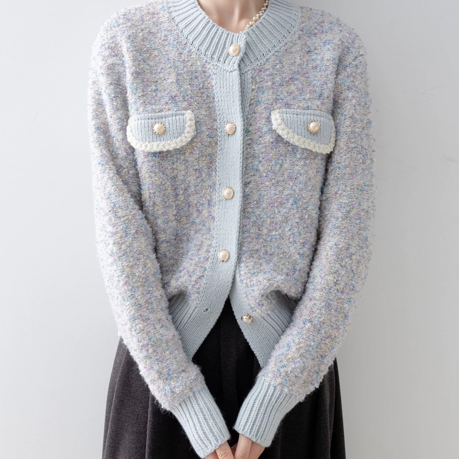 ツイードライクニットカーディガン W00479