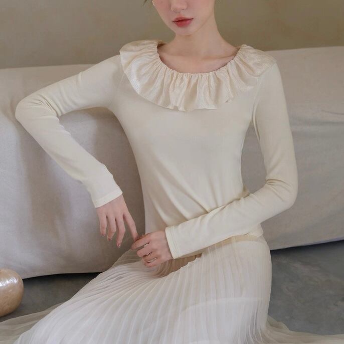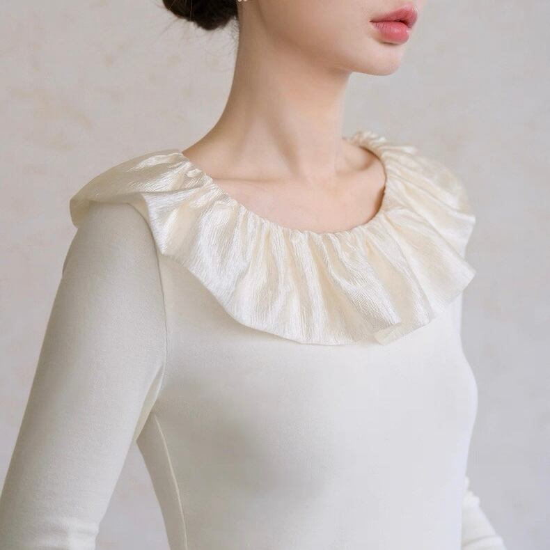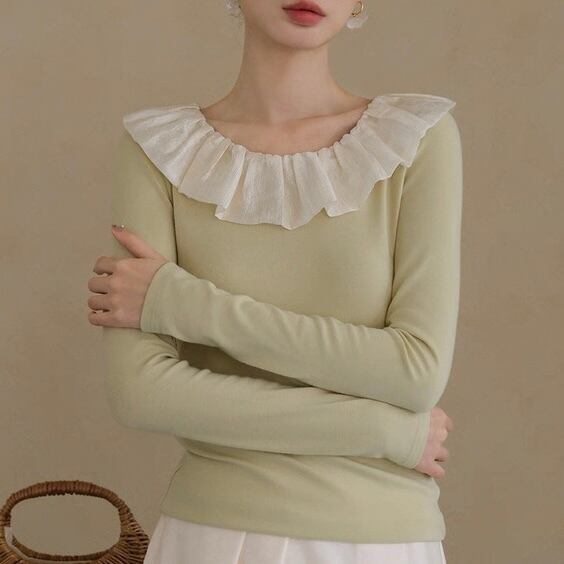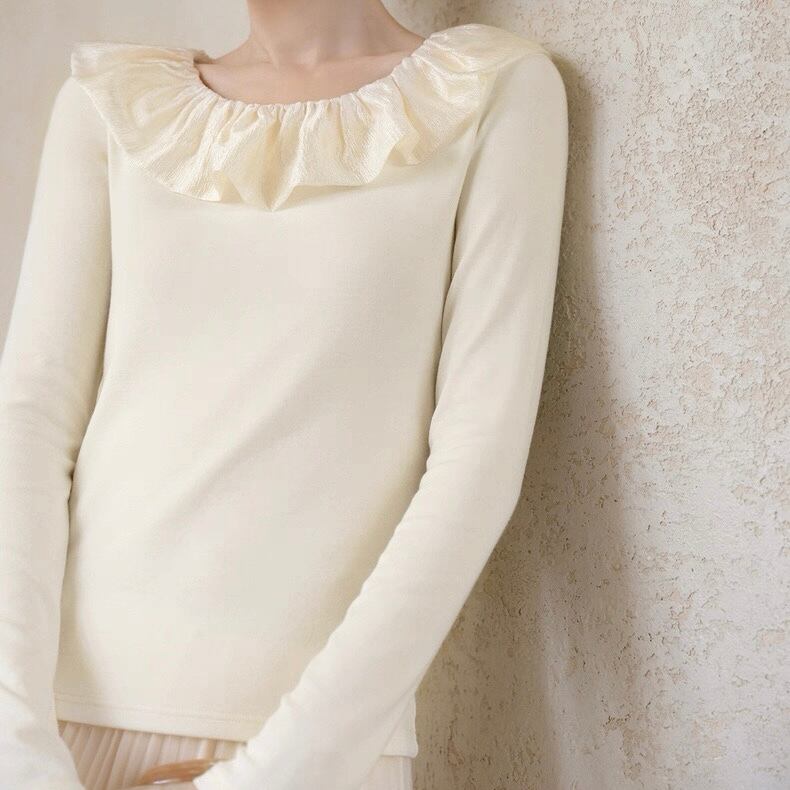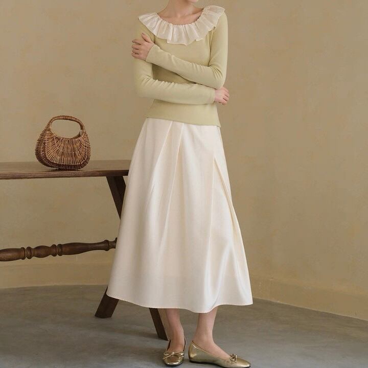 シンプルなボトムと合わせるだけで女性らしい雰囲気に。