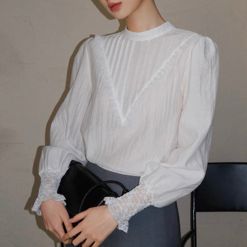 ピンタックVレースブラウス W00491