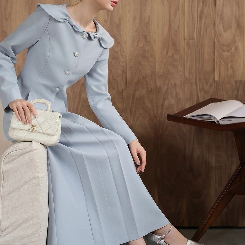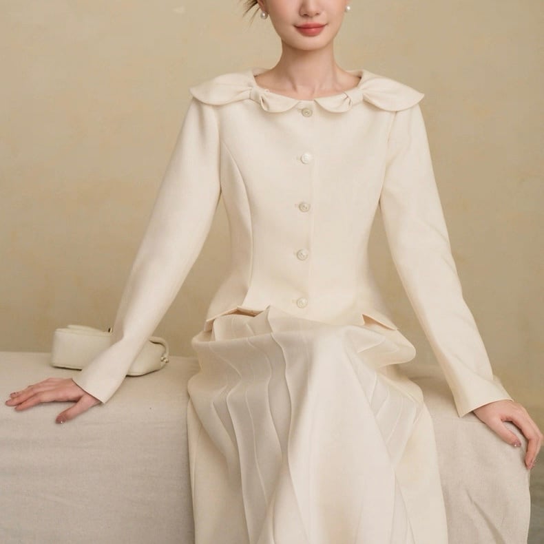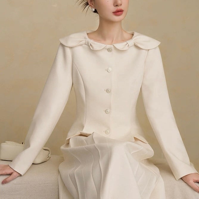 やわらかな曲線を描くビッグカラーが顔まわりを優しく演出。