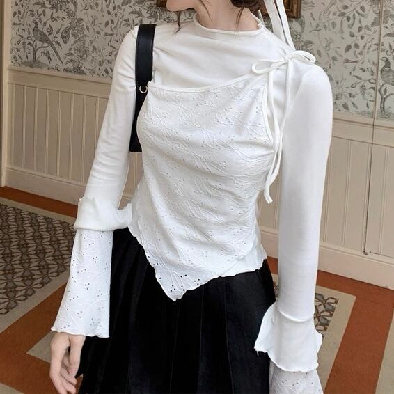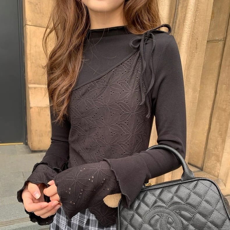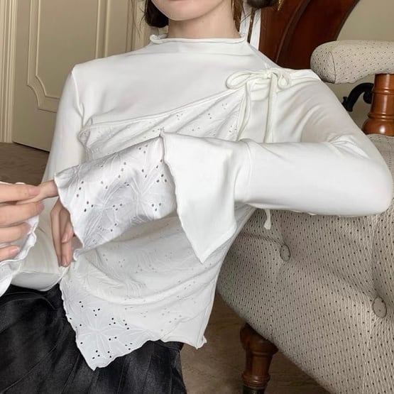 リボンレイヤードレーストップス W00532