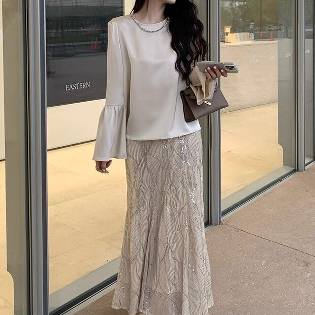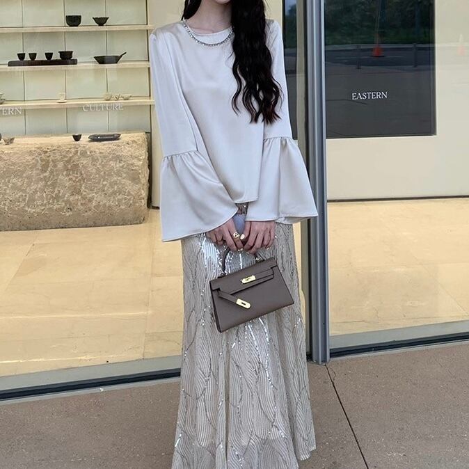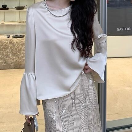 パールネックフレアスリーブブラウス W00546