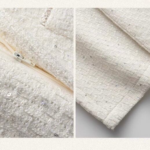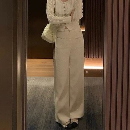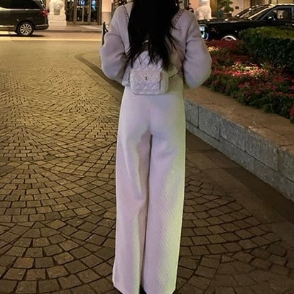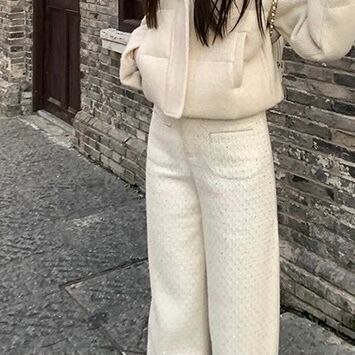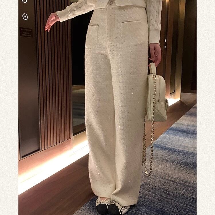 上品なツイード素材が魅力のワイドパンツ。