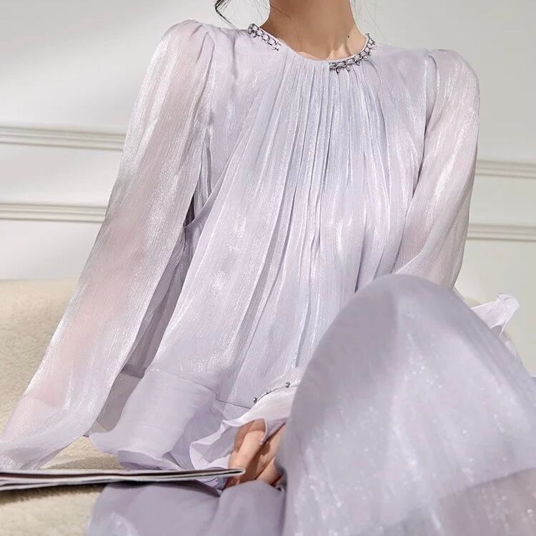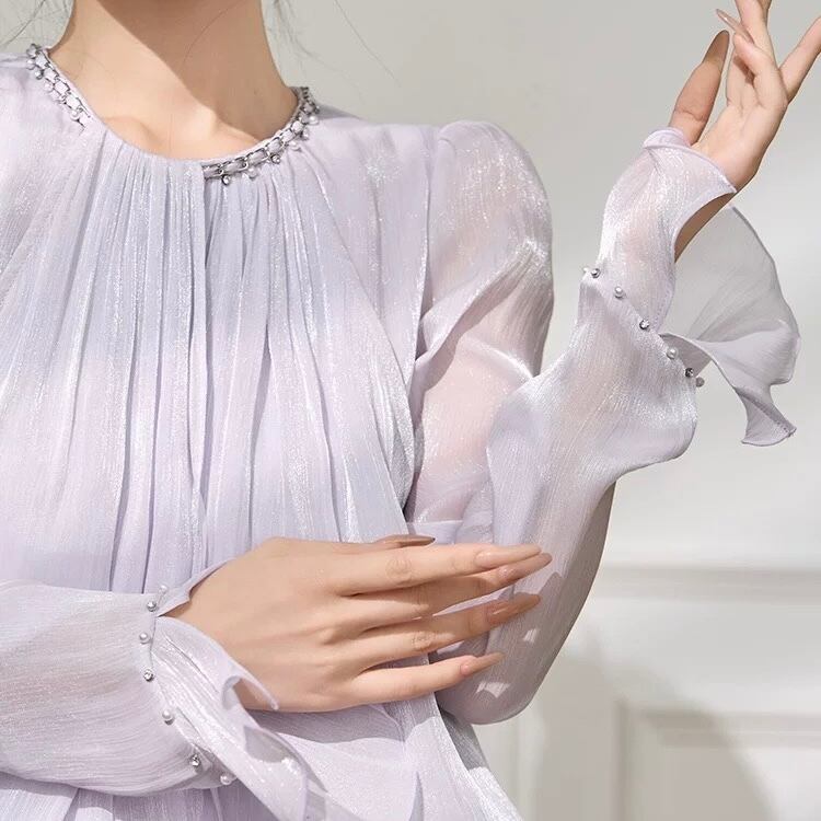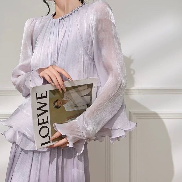 柔らかなシフォン素材が軽やかな印象を演出します。
