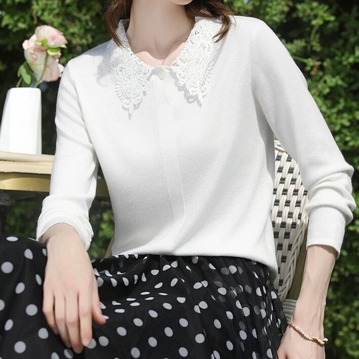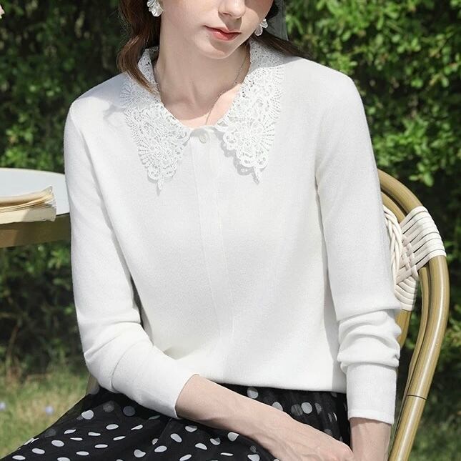 繊細なレース襟が華やかなカットソー。