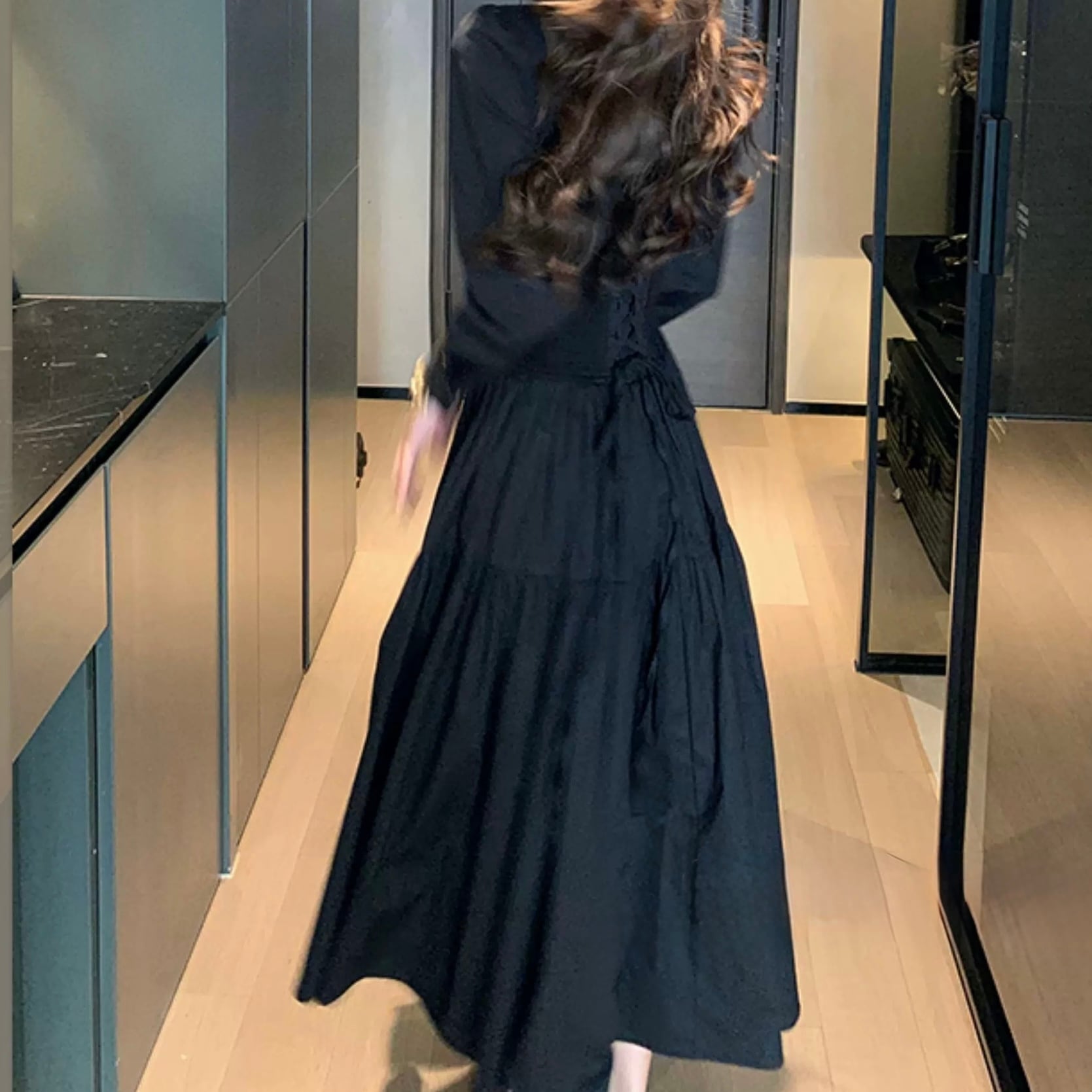 ふんわり広がるスカートで女性らしいシルエットに。