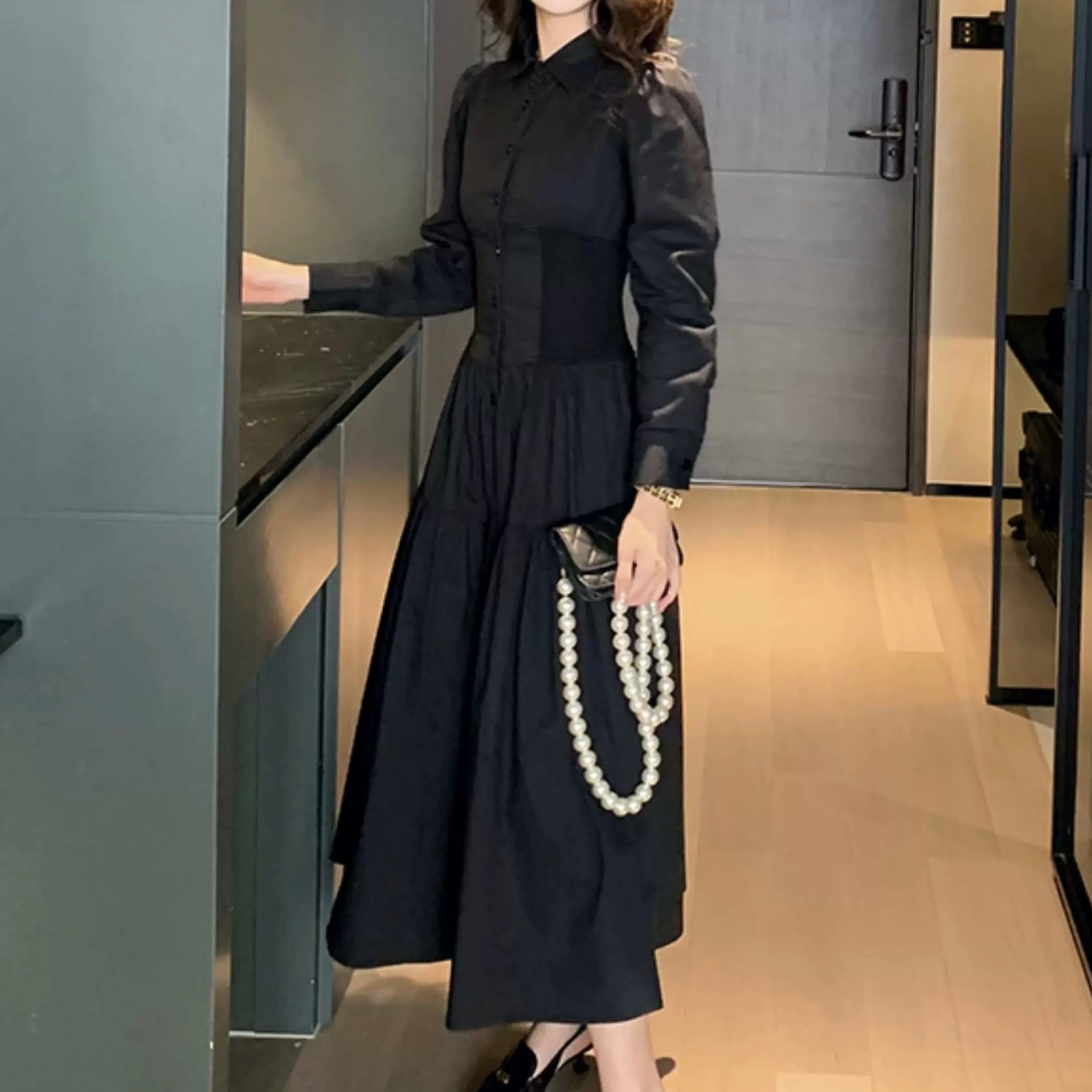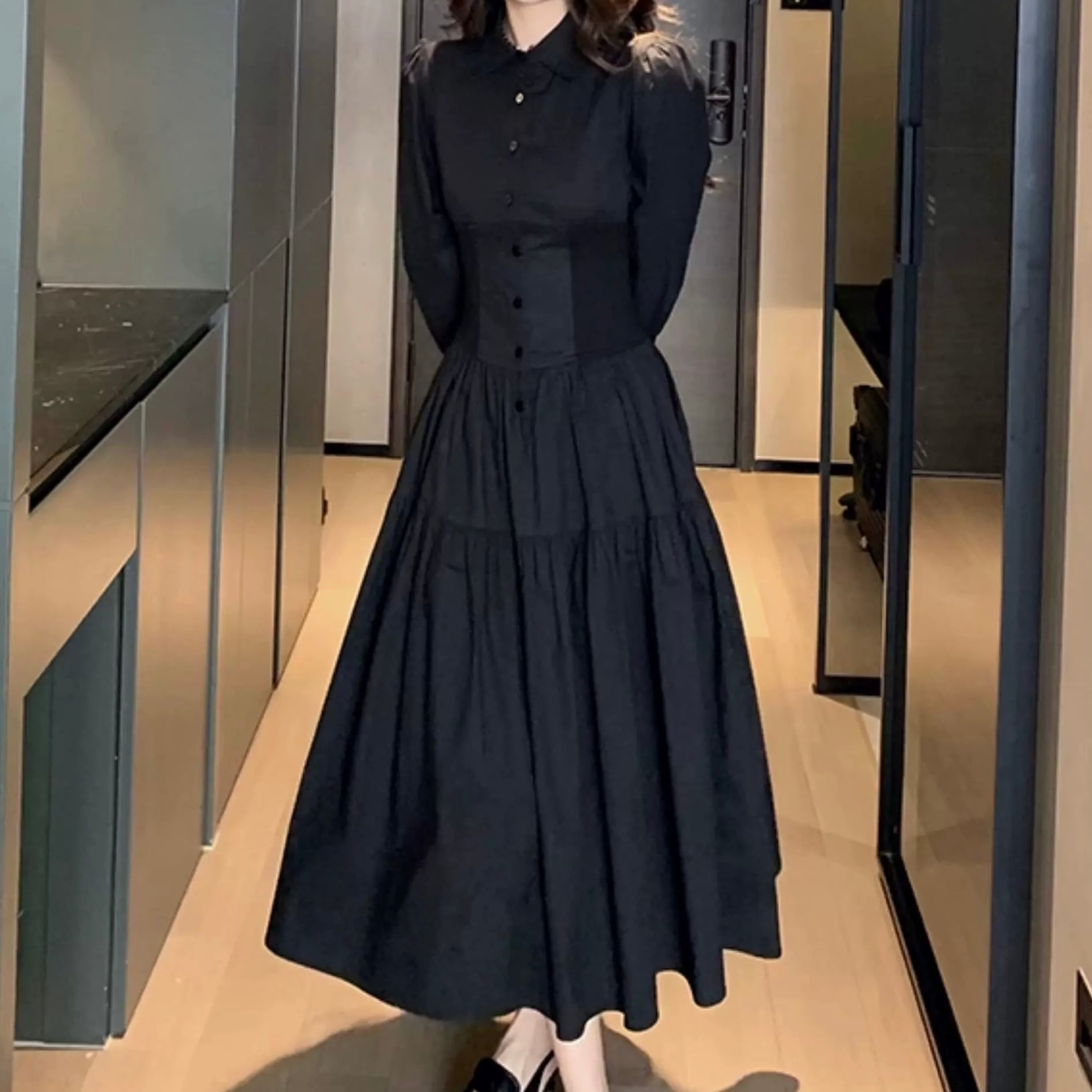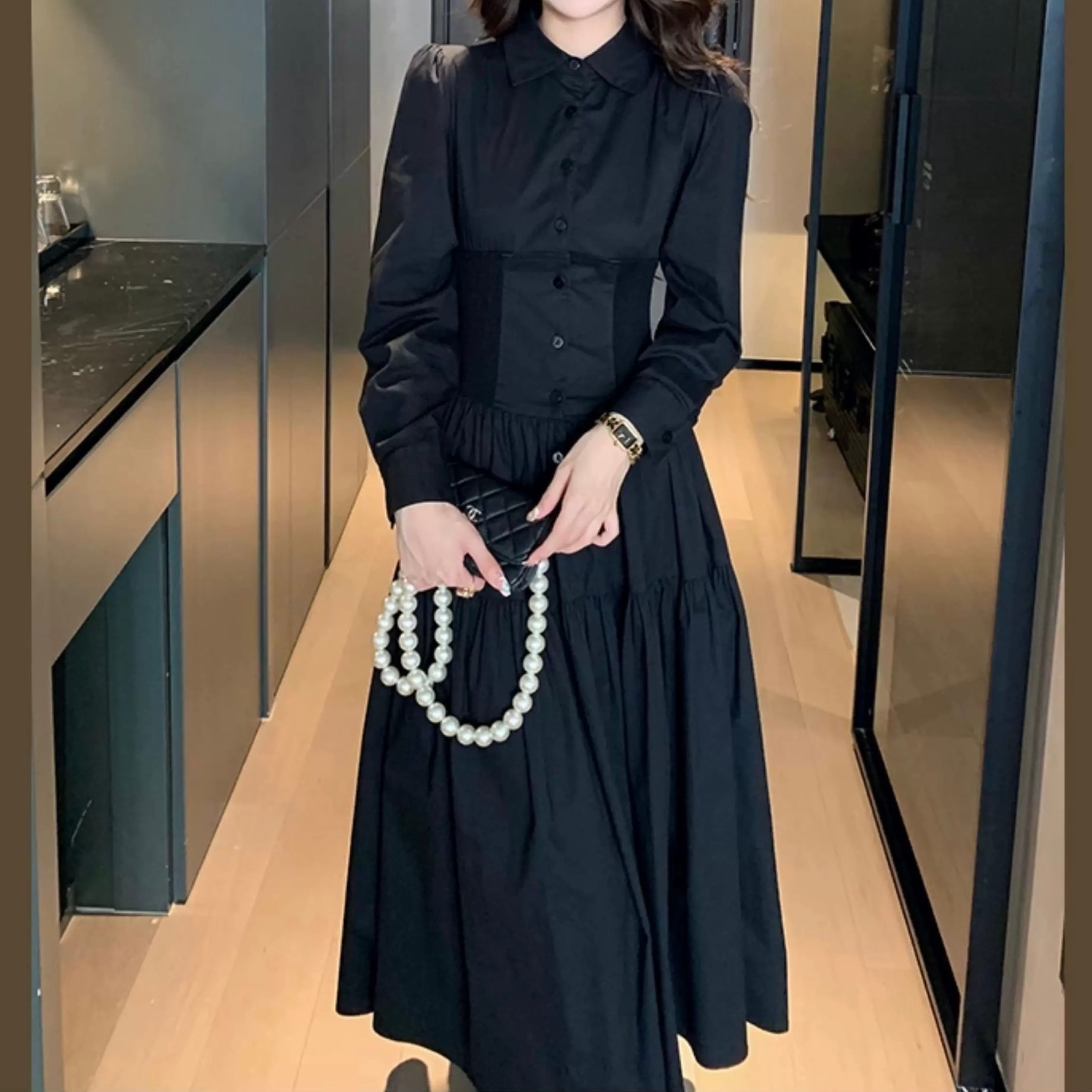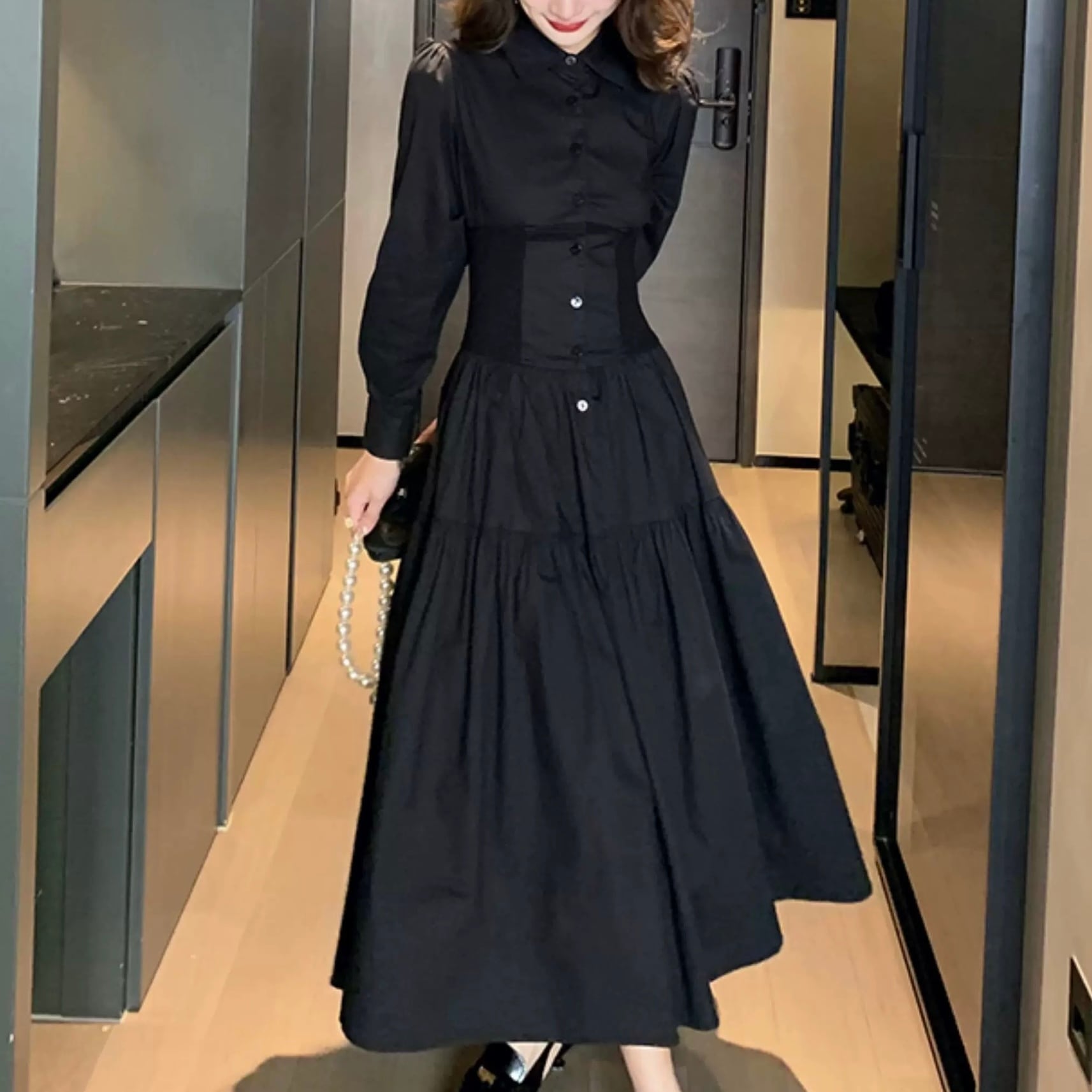 エレガントウエストシェイプシャツワンピース W00563