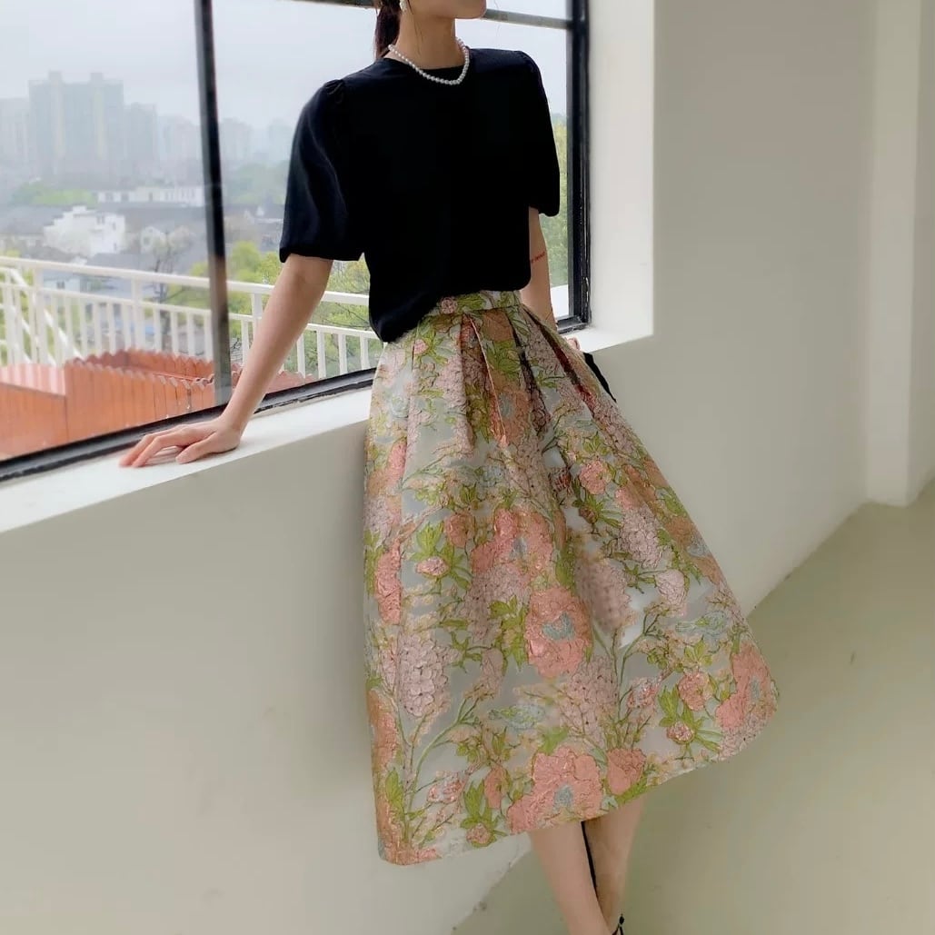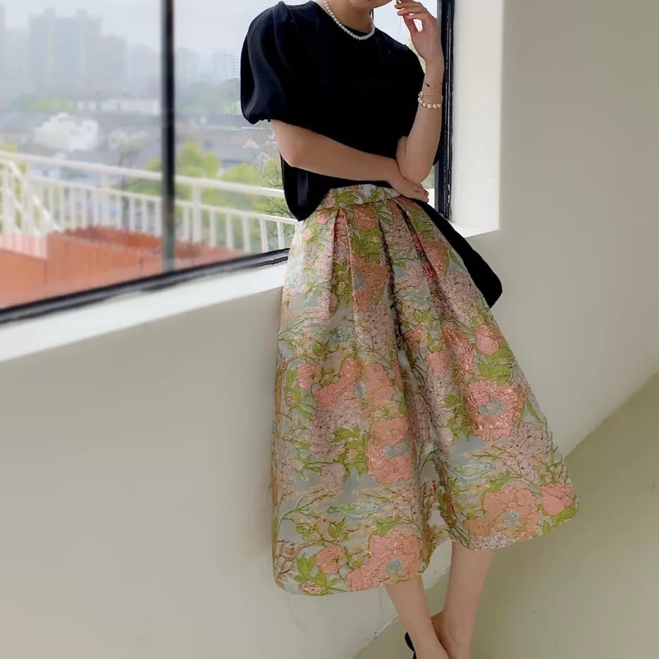 ふんわり広がるフレアシルエットが女性らしさを演出します。