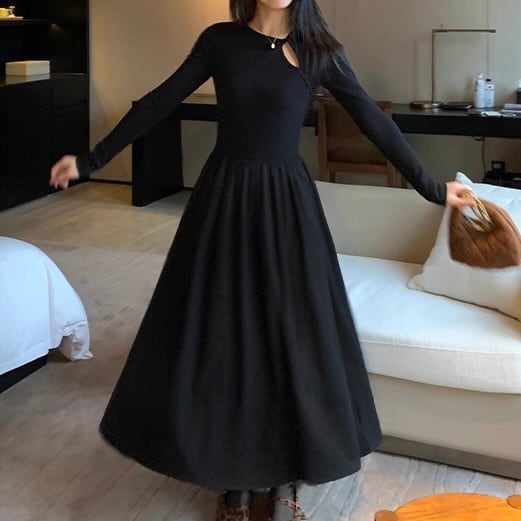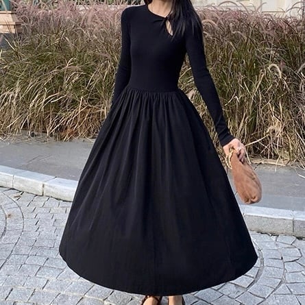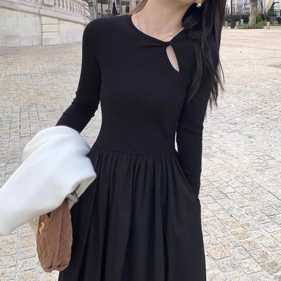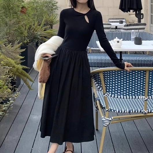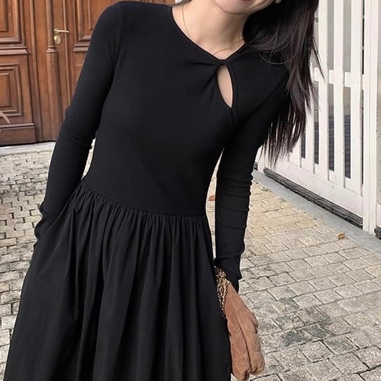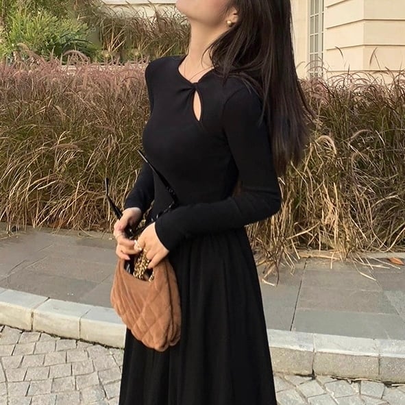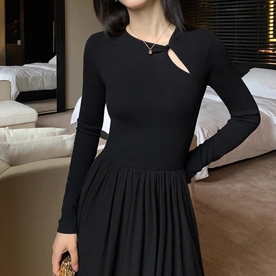 胸元のカットデザインがアクセントのワンピース。