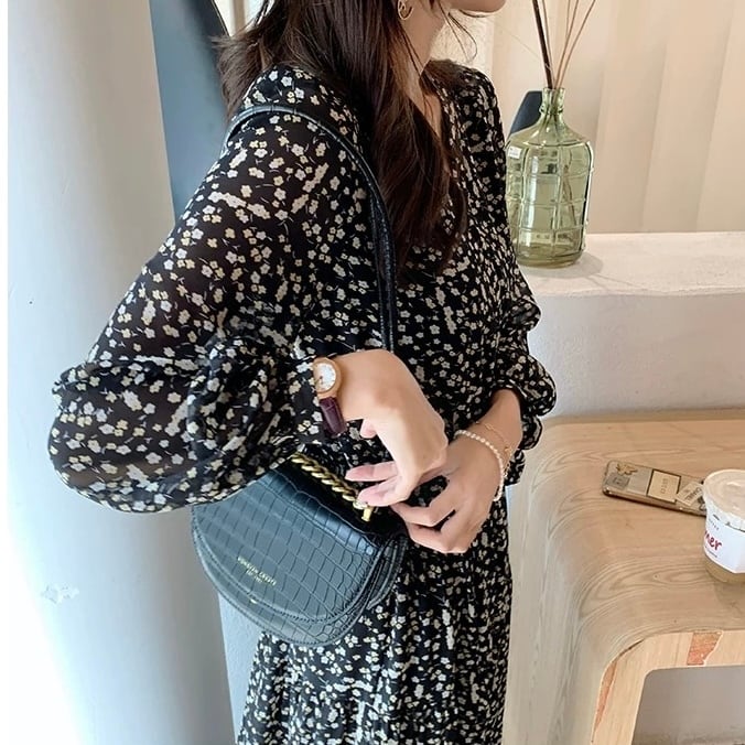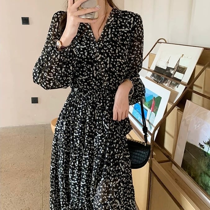 上品な小花柄とVネックデザインが女性らしさを引き立てるワンピース。