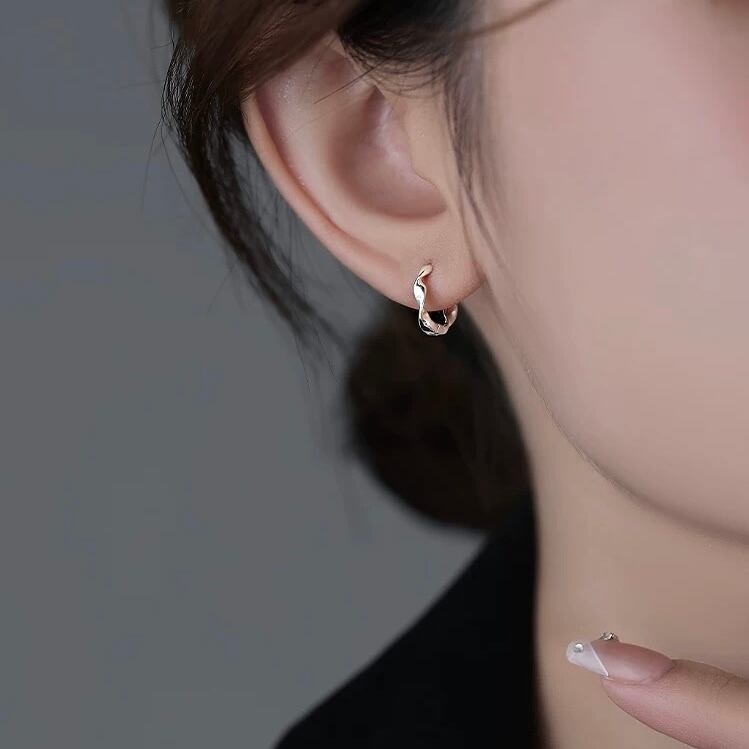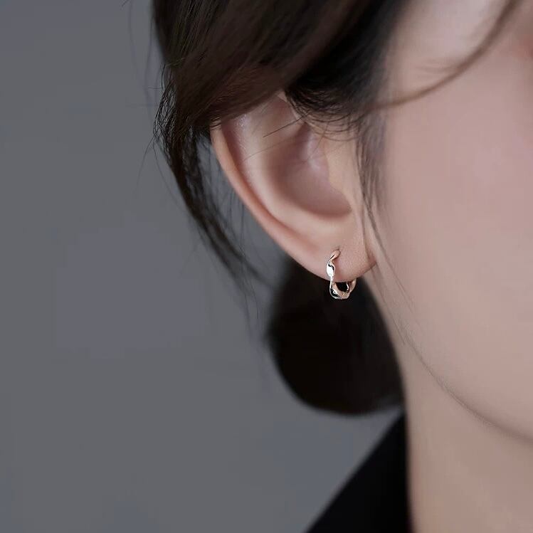 さりげないウェーブデザインが美しいフープピアス。
