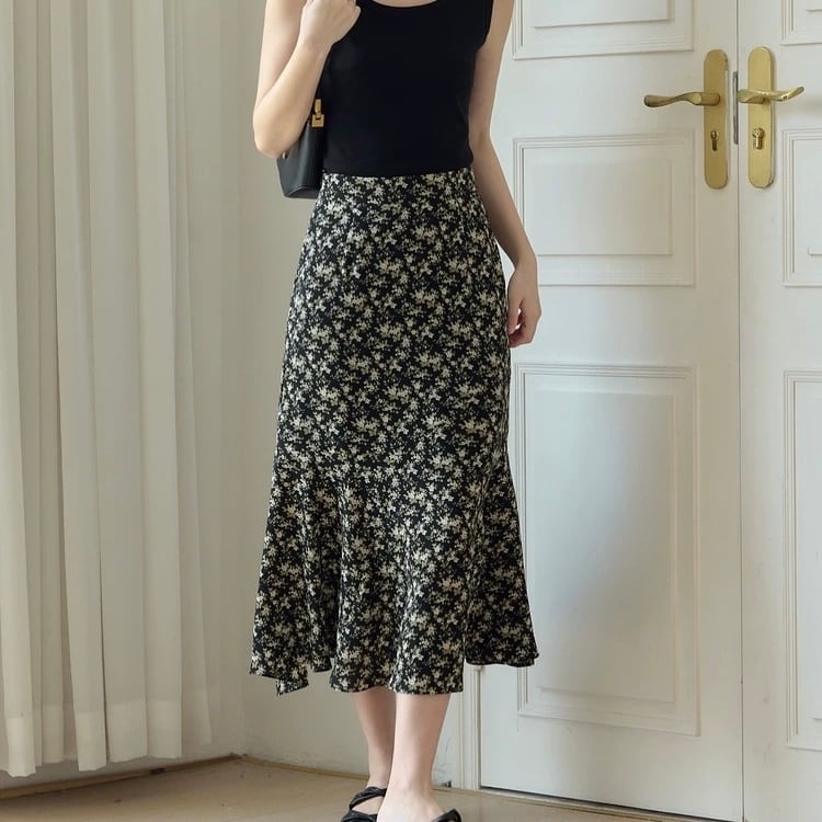 クラシックフローラルマーメイドスカート W00602
