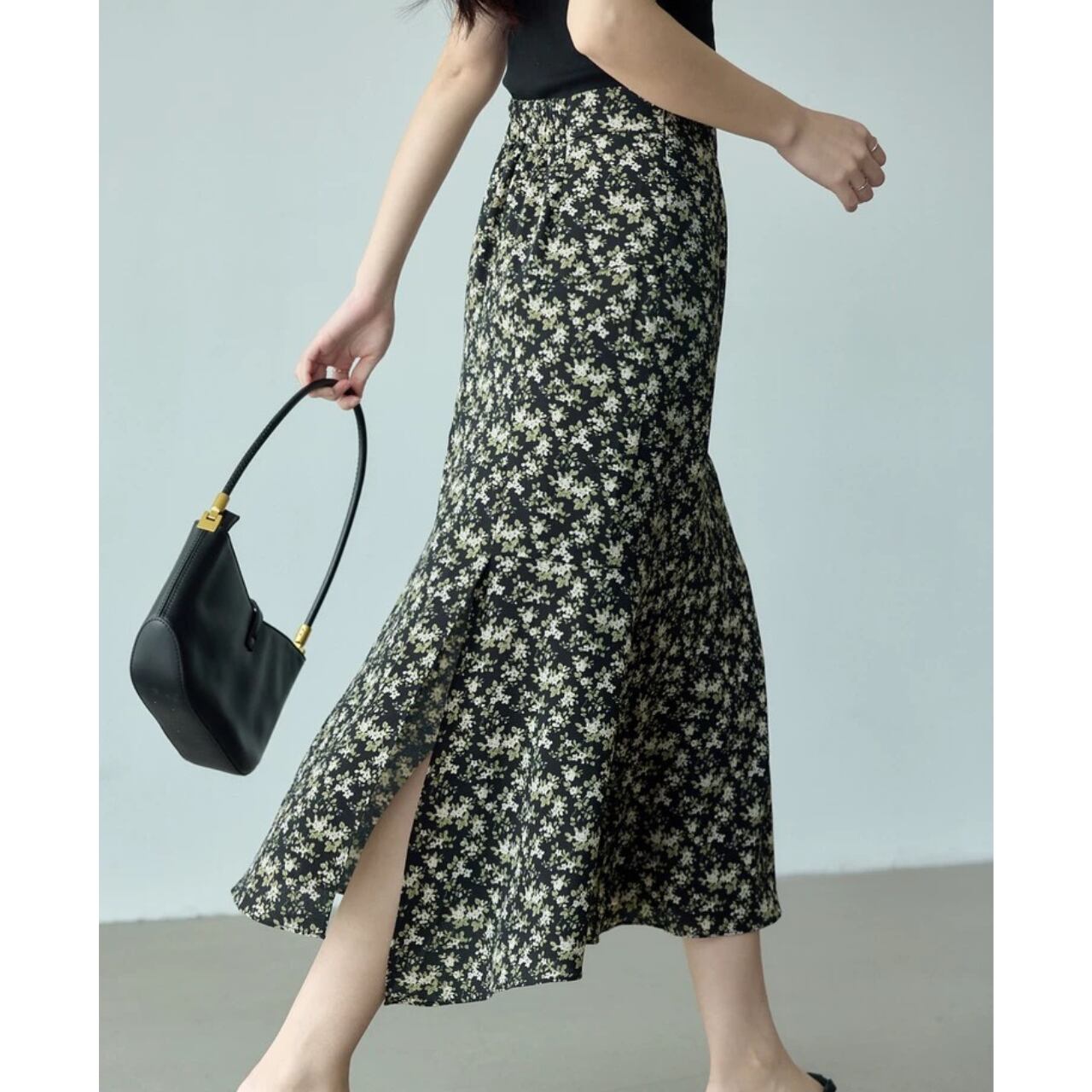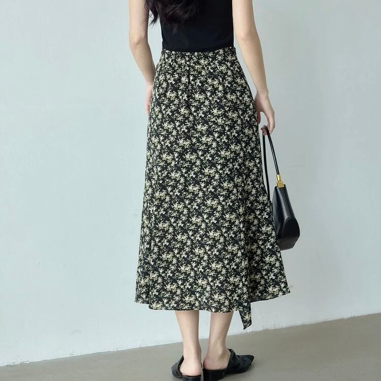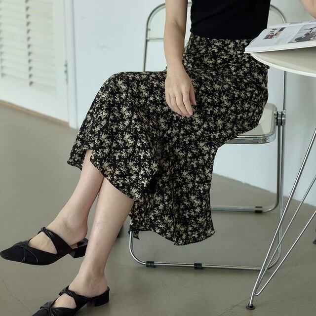 小花柄が上品な雰囲気のロングスカート。