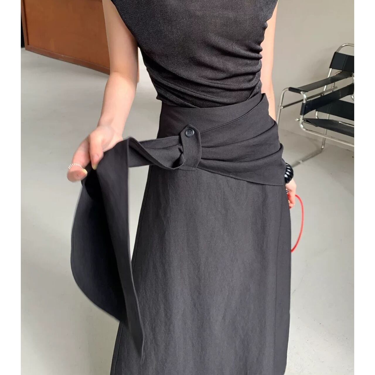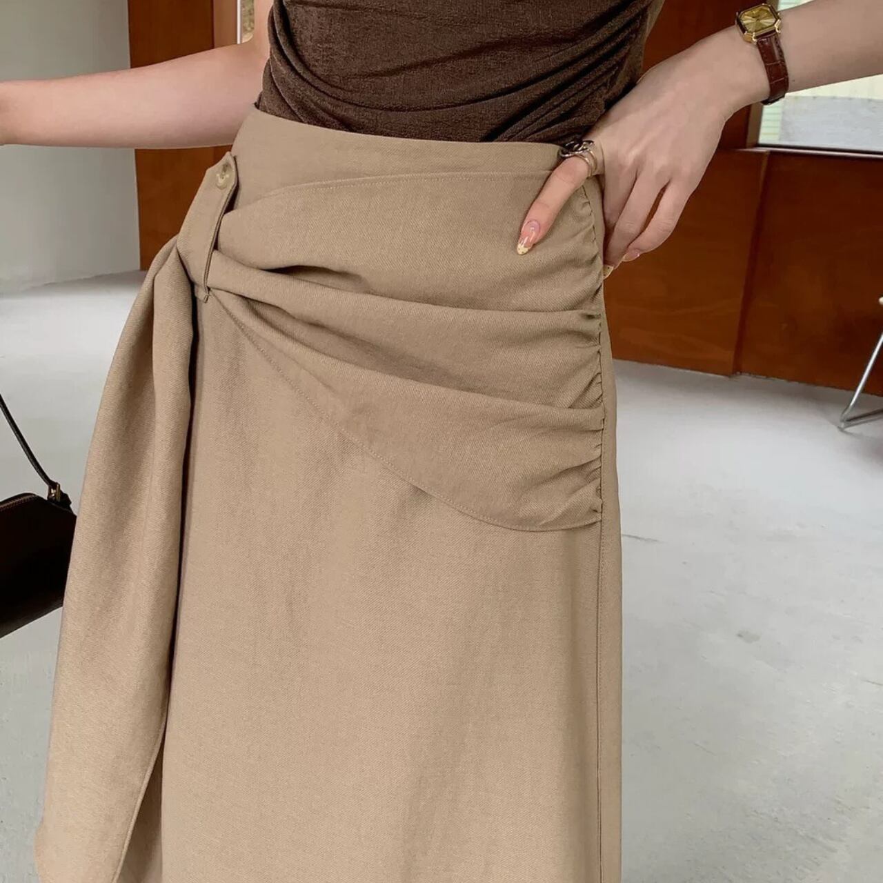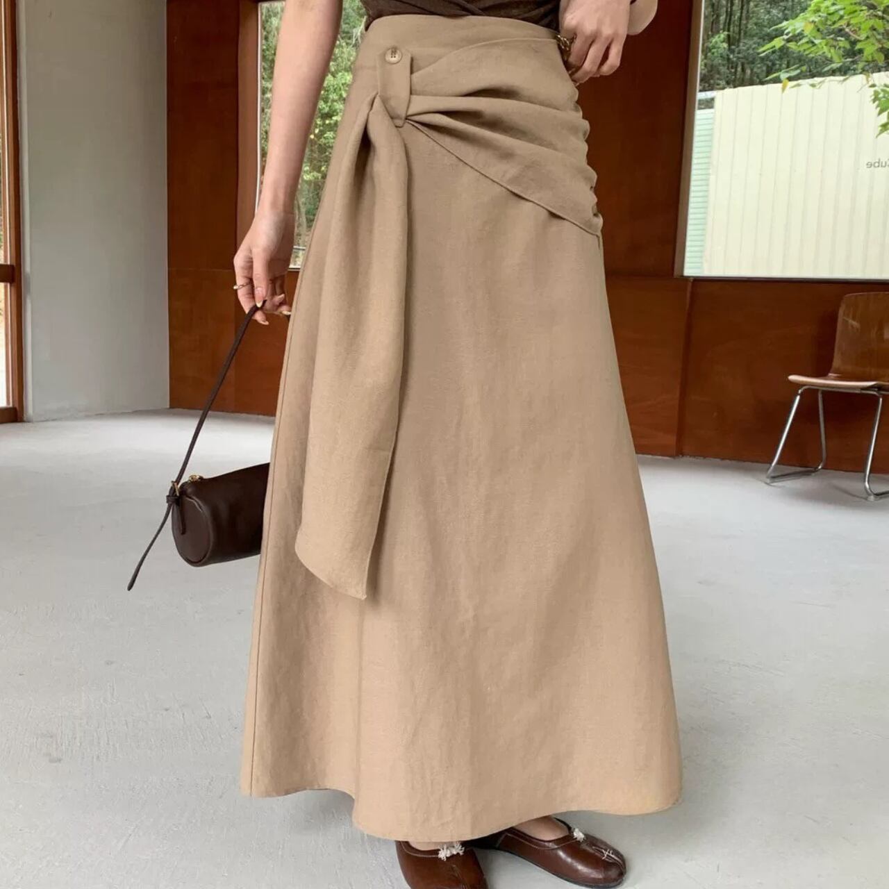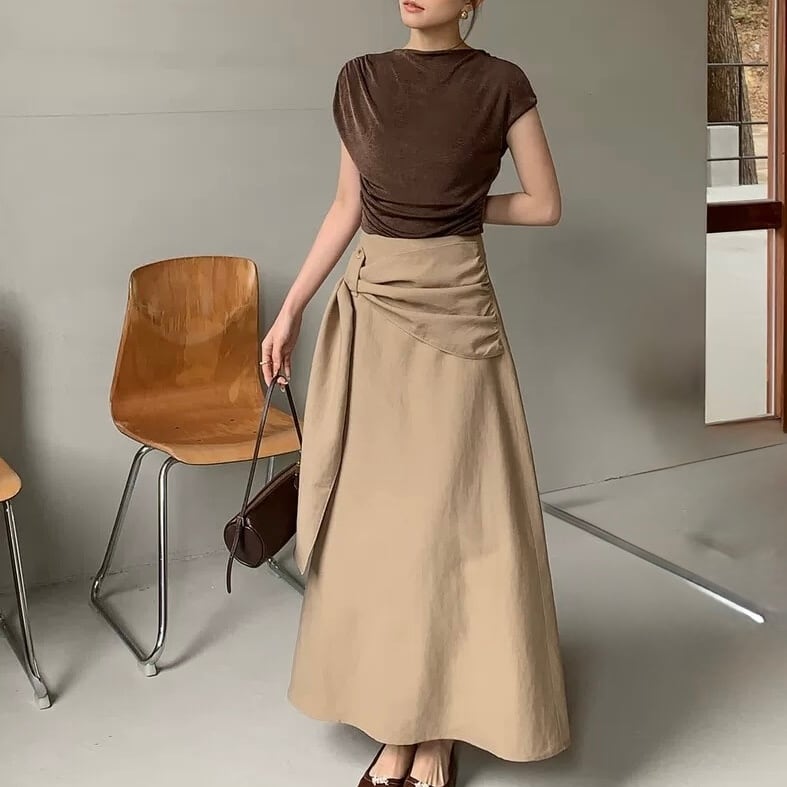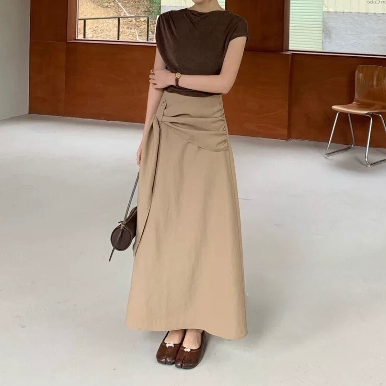 ウエストデザインが印象的なラップスカート。