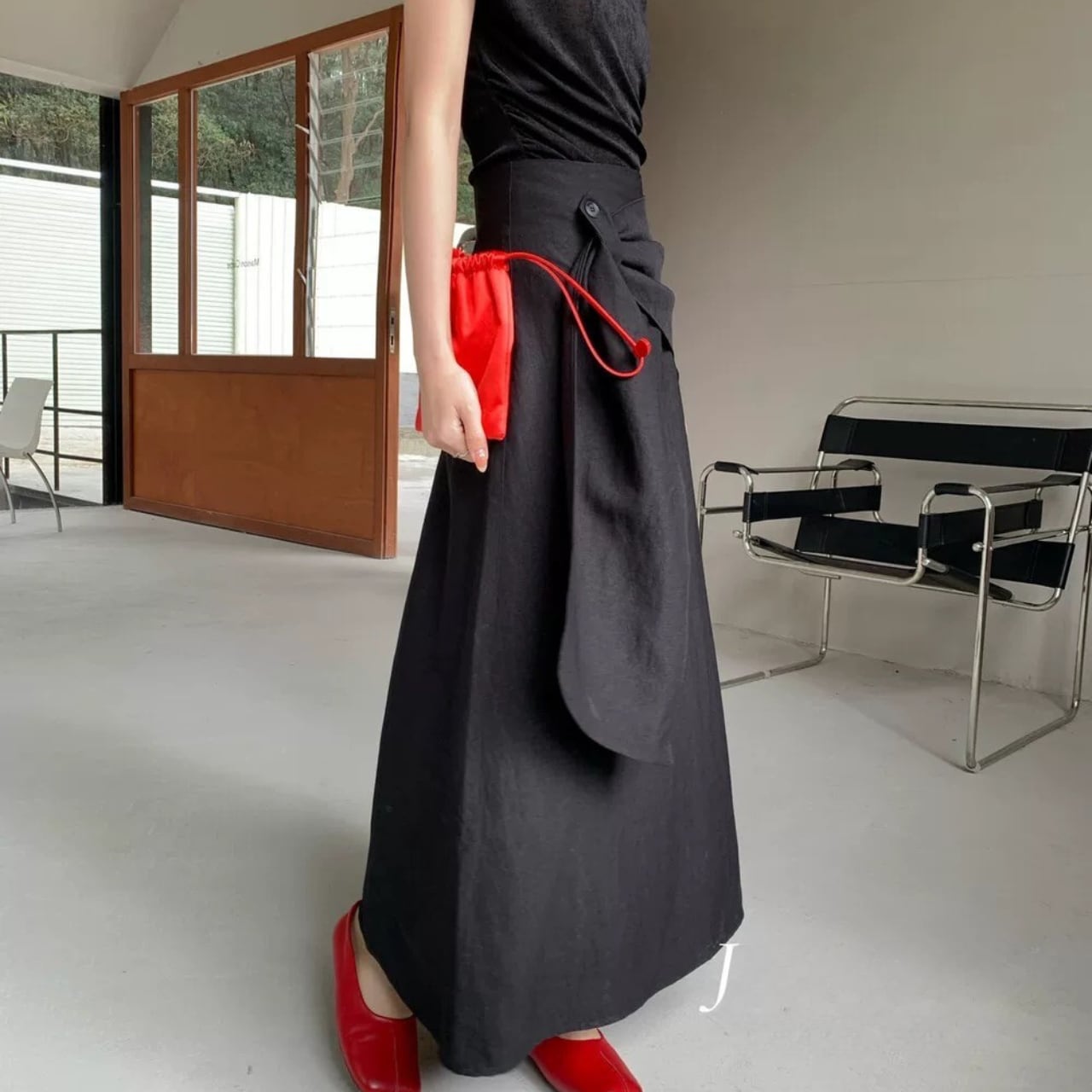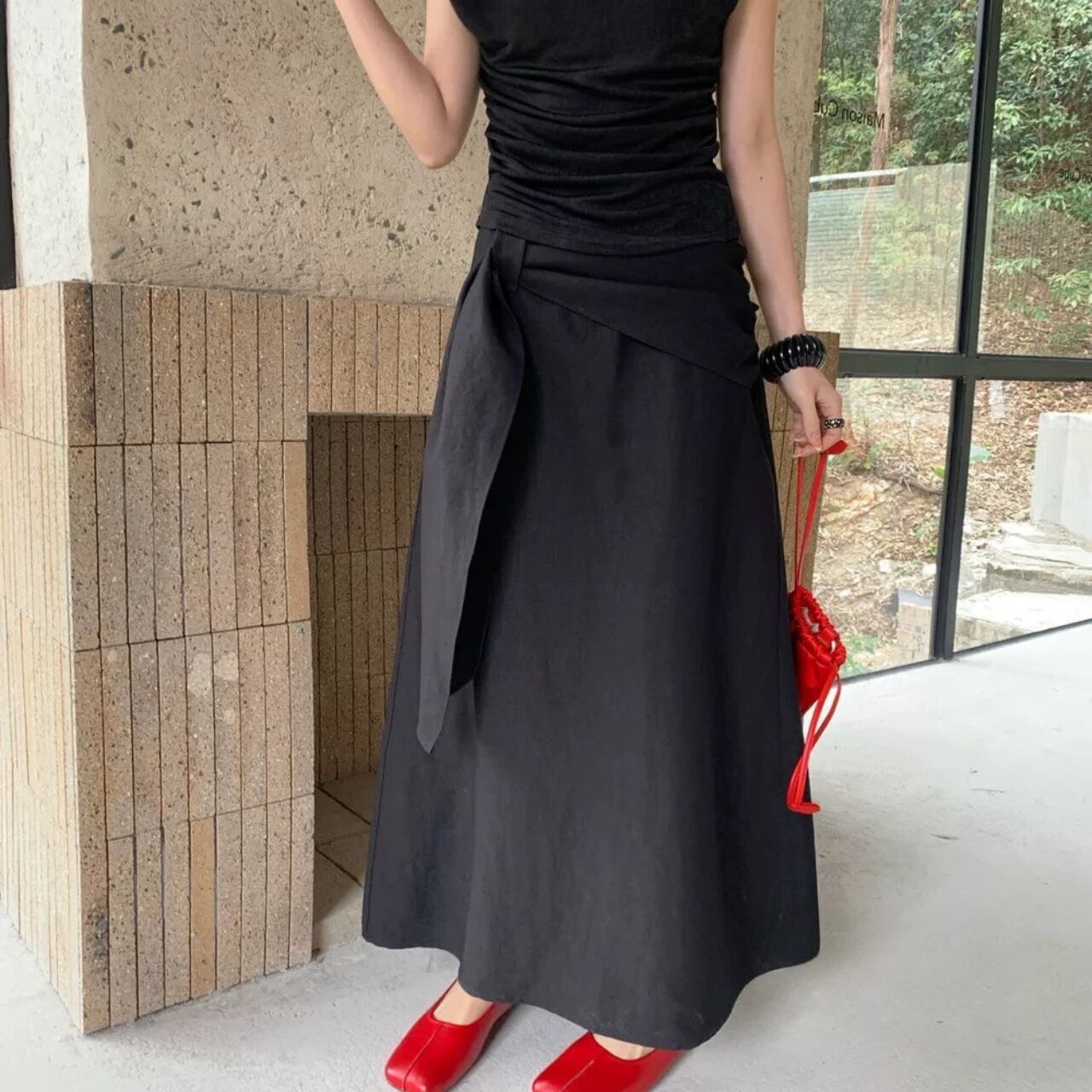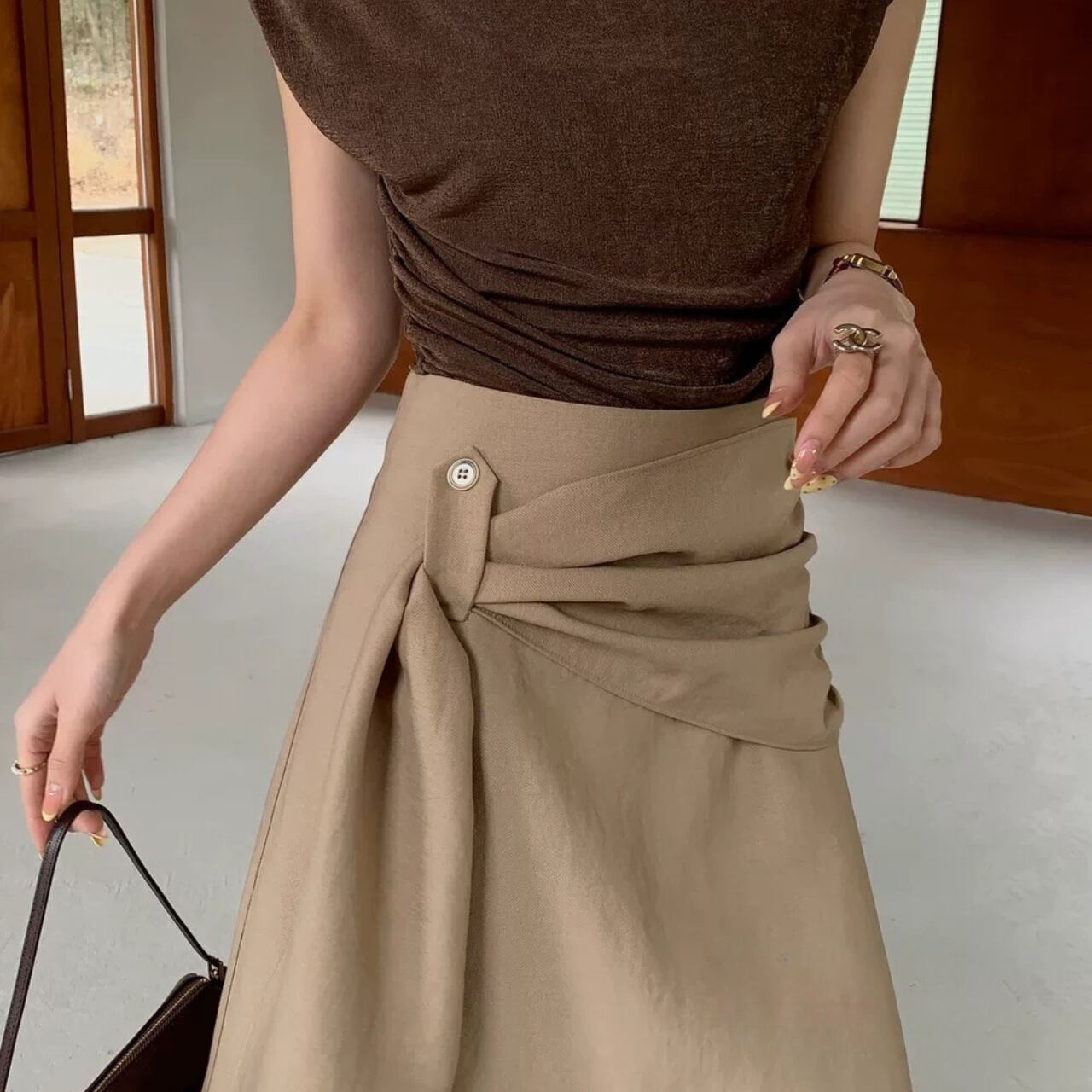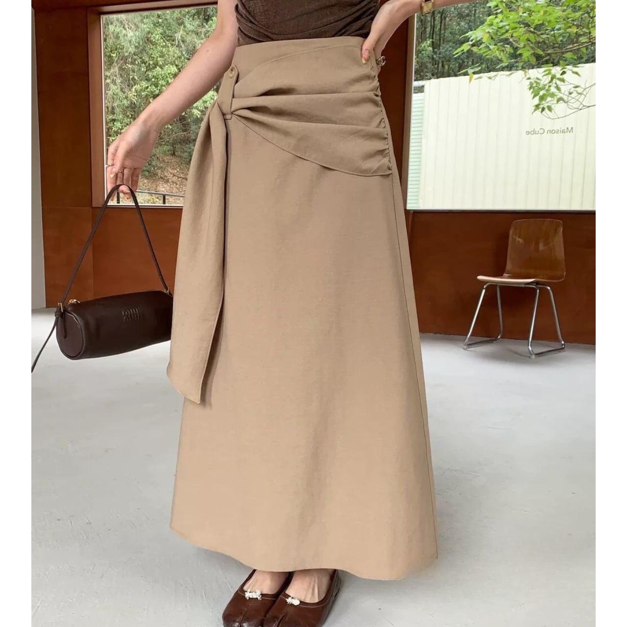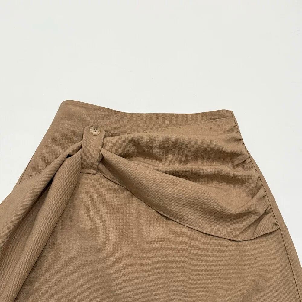 ウエストデザインが印象的なラップスカート。