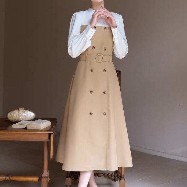 ウエストベルト付きで美しいシルエットを演出。